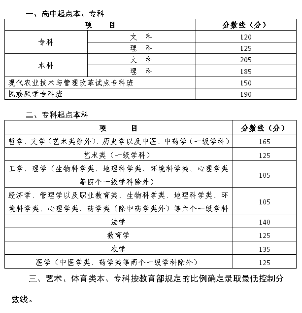 附件:四川省2017年各类成人高校招生录取最低控制分数线