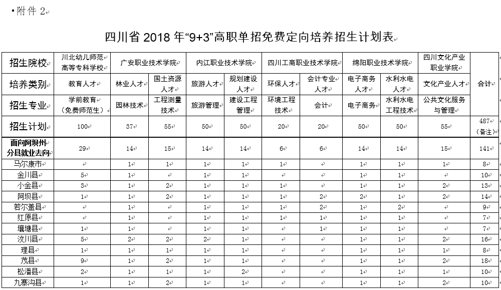 关于印发四川省2018年高职院校面向民族地区“9+3”毕业生单独招生工作实施方案的通知