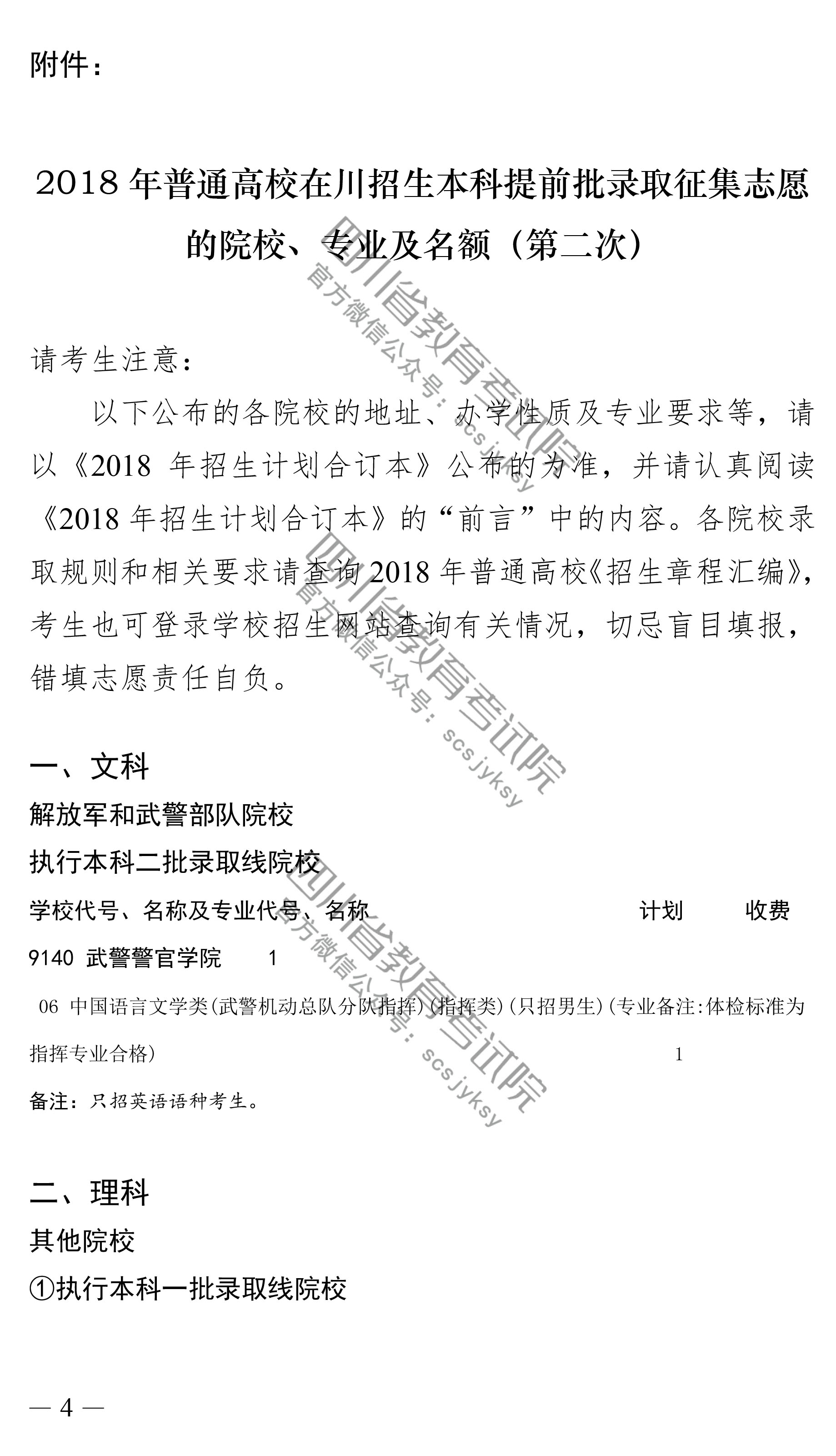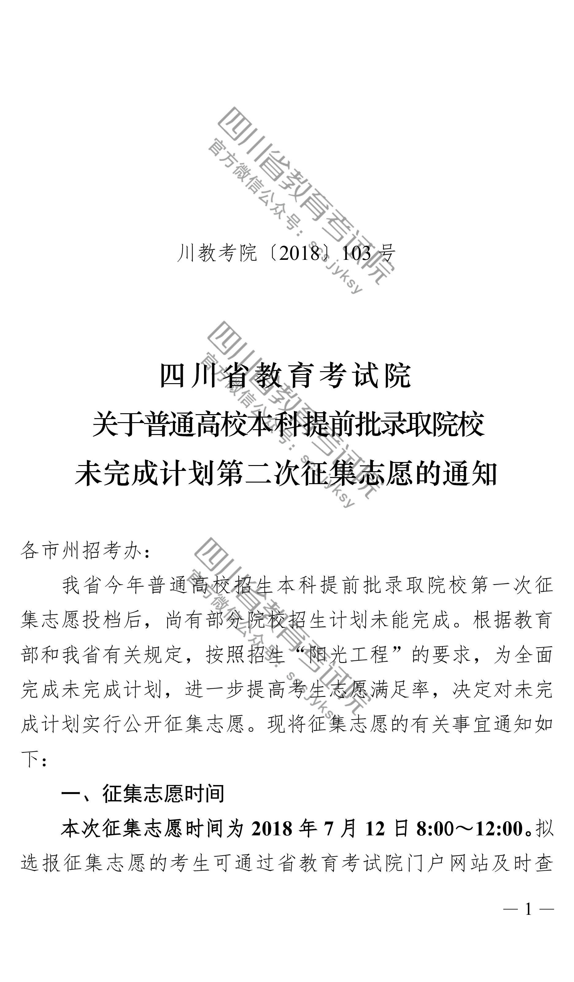 关于普通高校本科提前批录取院校未完成计划第二次征集志愿的通知