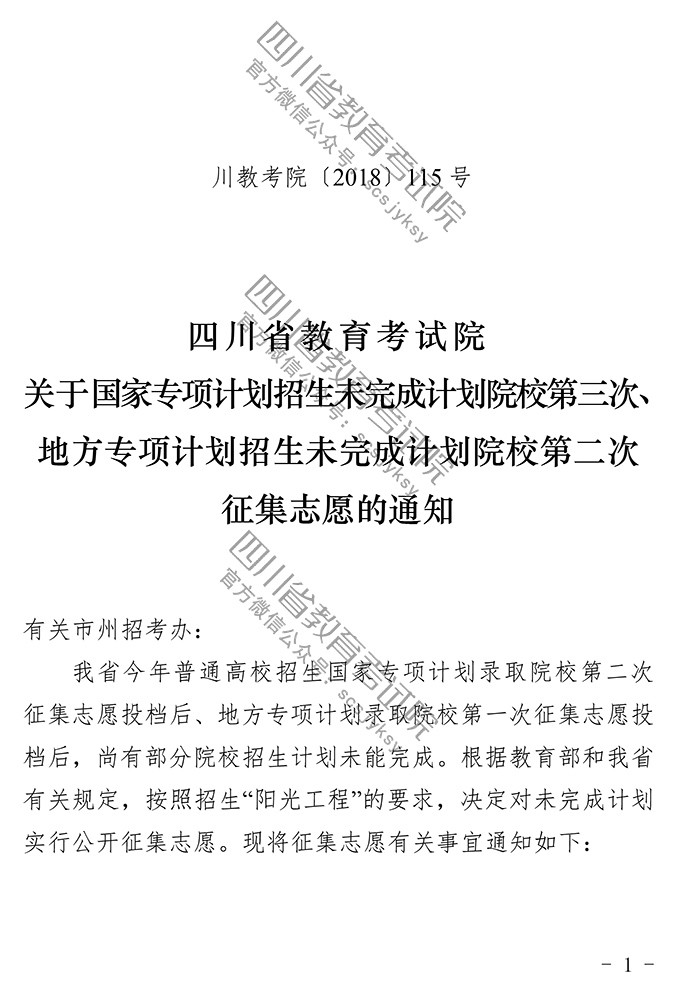 关于国家专项计划招生未完成计划院校第三次、地方专项计划招生未完成计划院校第二次征集志愿的通知
