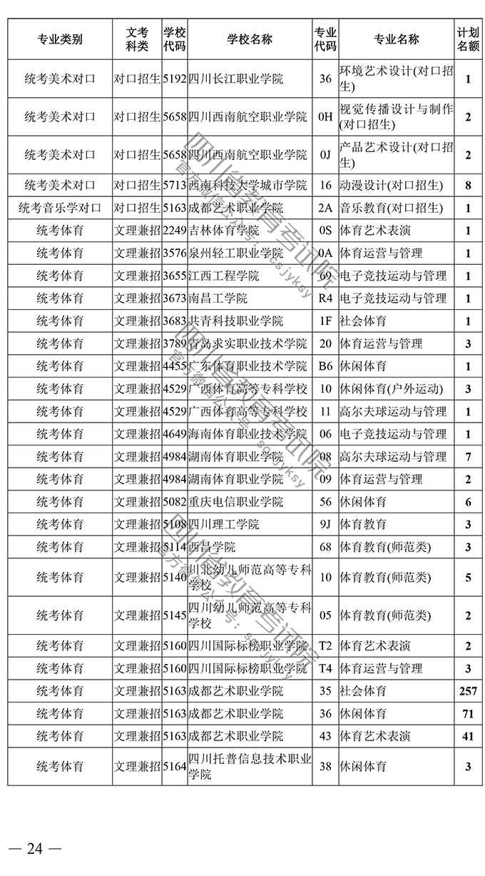 四川省2024年普通高校招生本科艺术类综合成绩、体育类专业成绩分段统计表