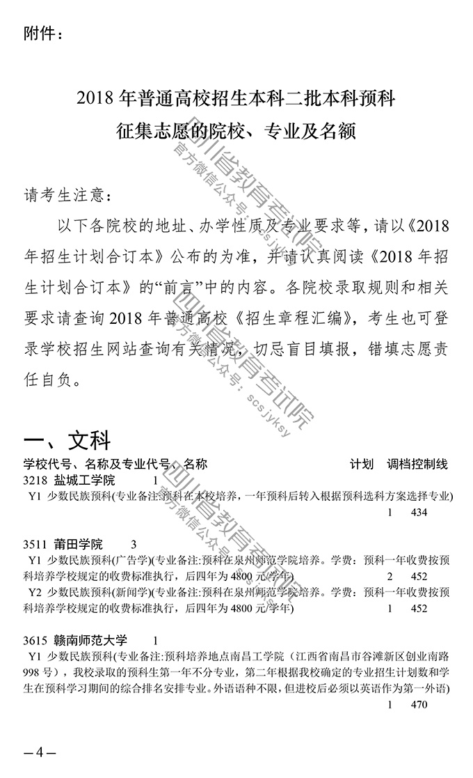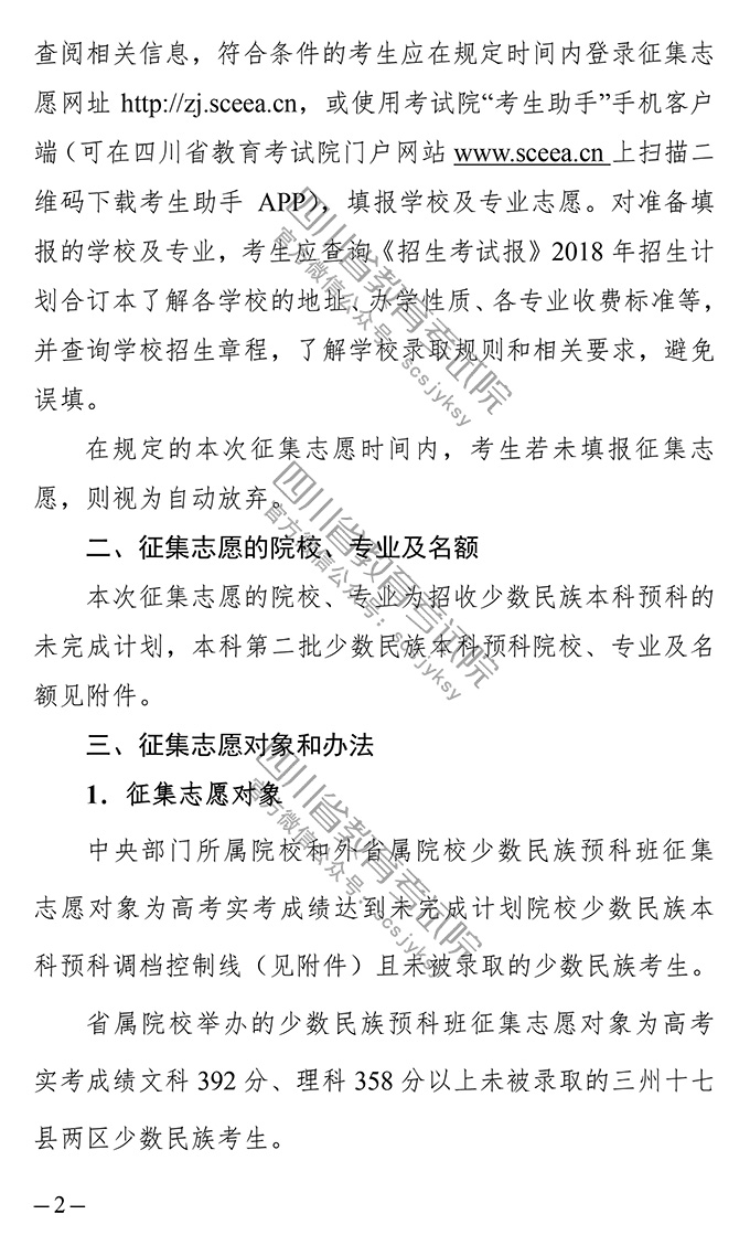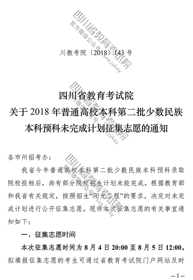 关于2018年普通高校本科第二批少数民族本科预科未完成计划征集志愿的通知