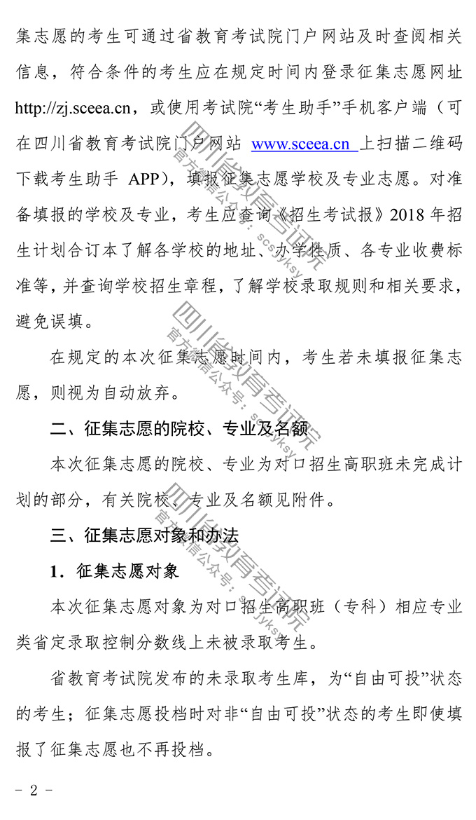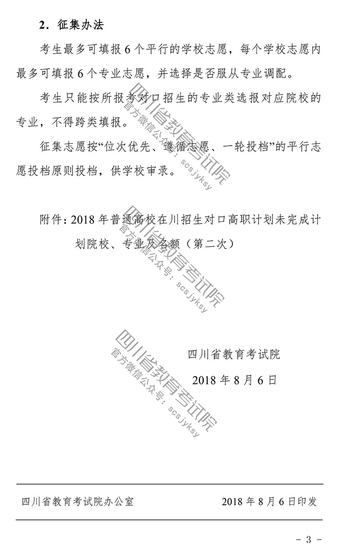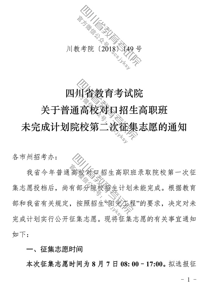 关于普通高校对口招生高职班未完成计划院校第二次征集志愿的通知