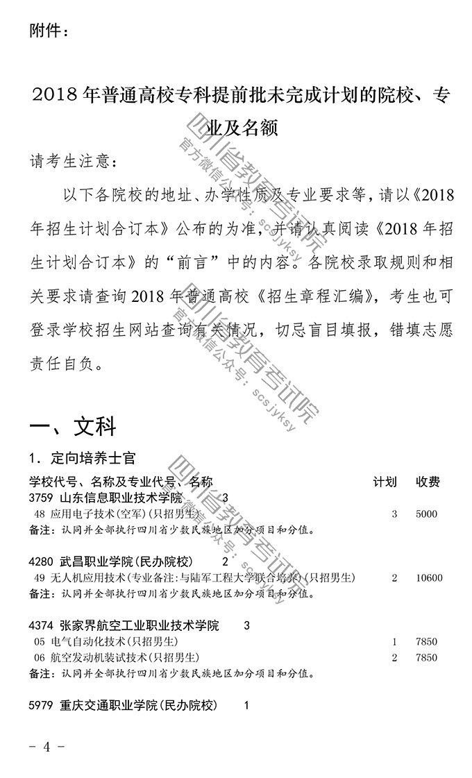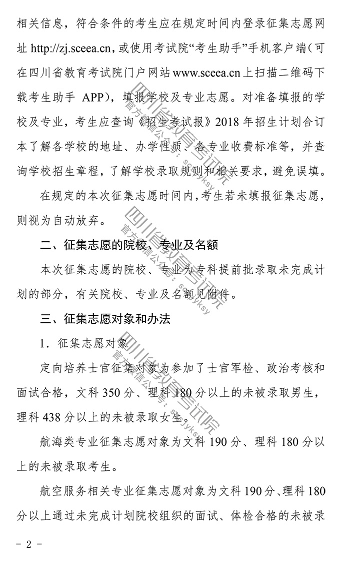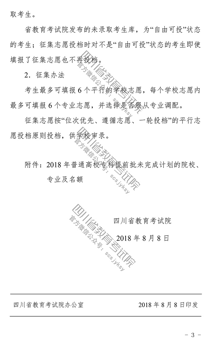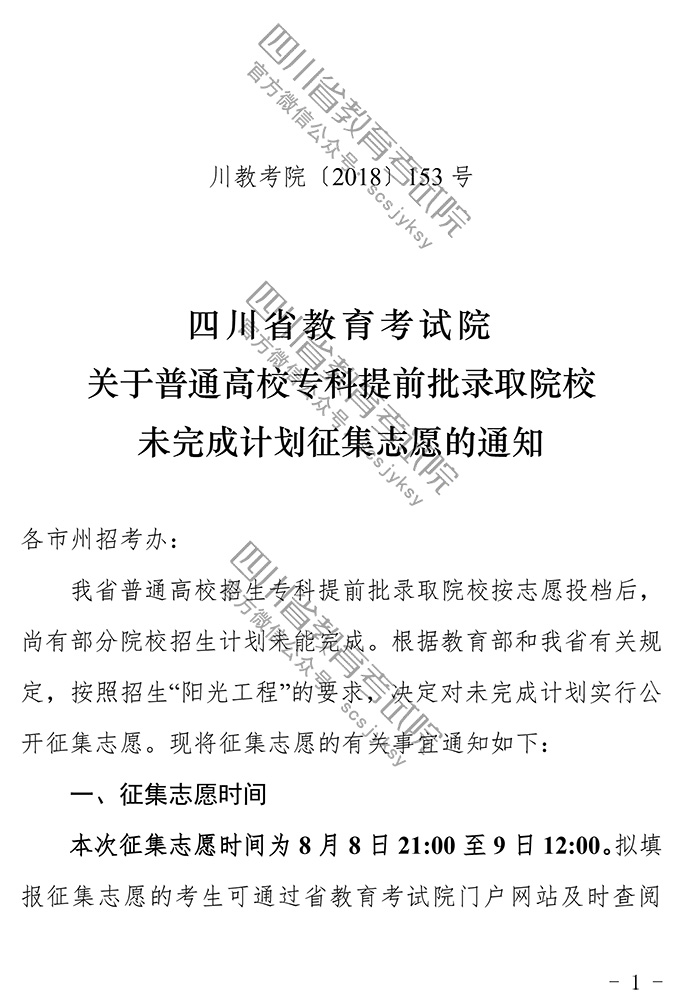 关于普通高校专科提前批录取院校未完成计划征集志愿的通知