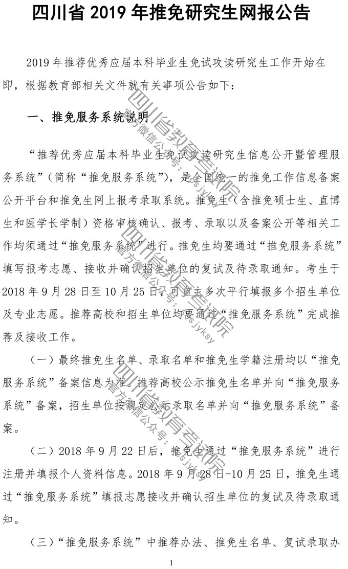四川省2019年推免研究生网报公告