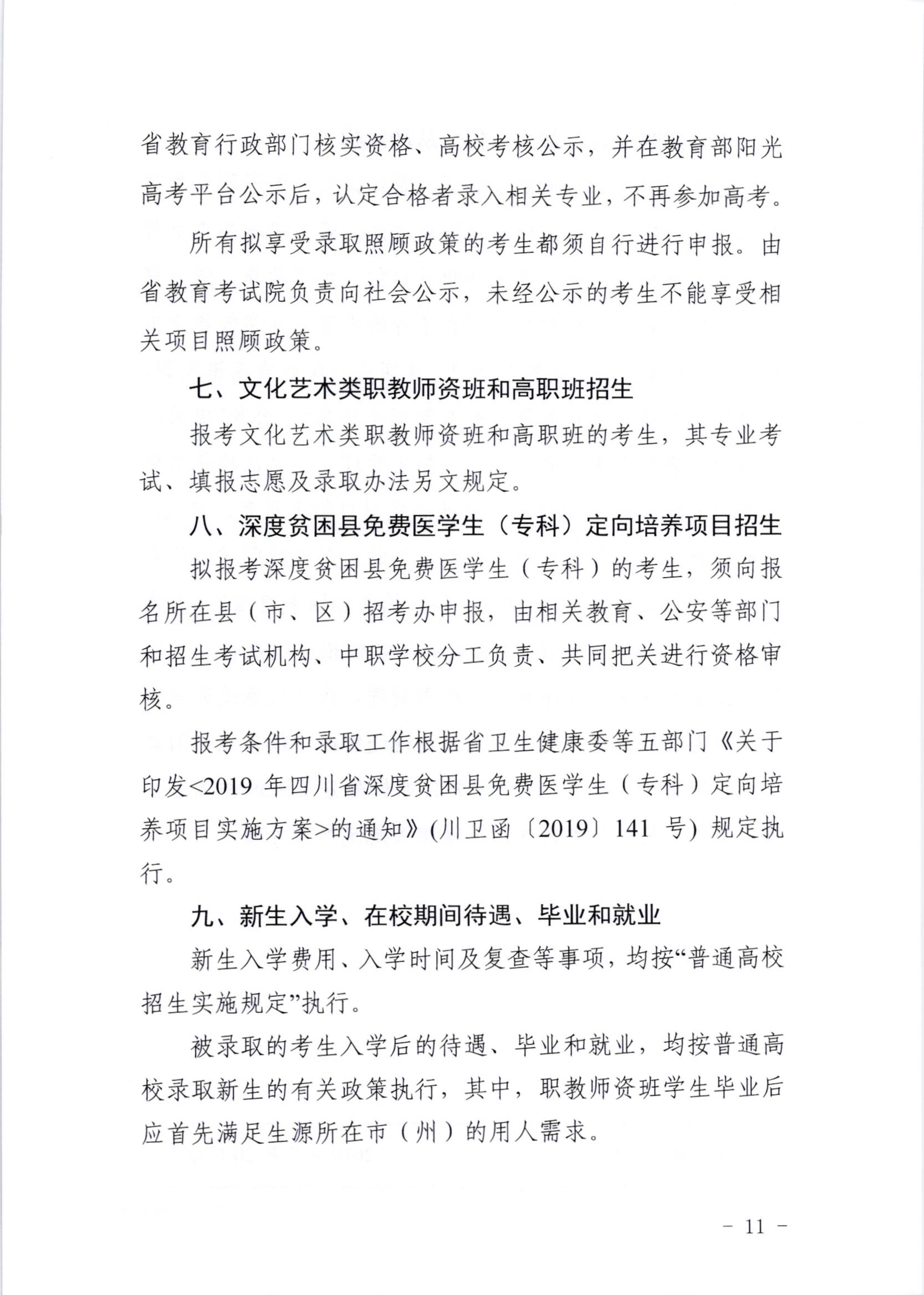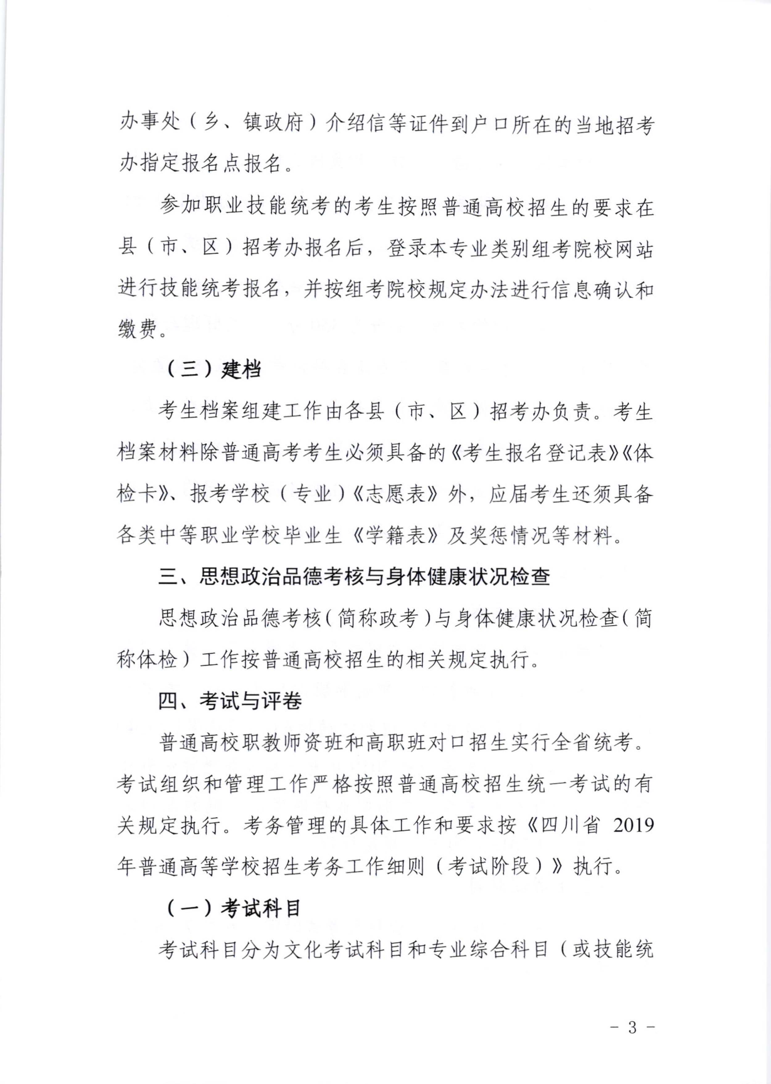 关于印发《四川省2019年普通高校职教师资班和高职班对口招生办法》通知