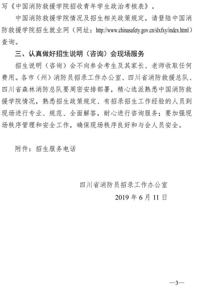 四川省消防员招录工作办公室 关于举办中国消防救援学院在川招生 说明(咨询)会的通知