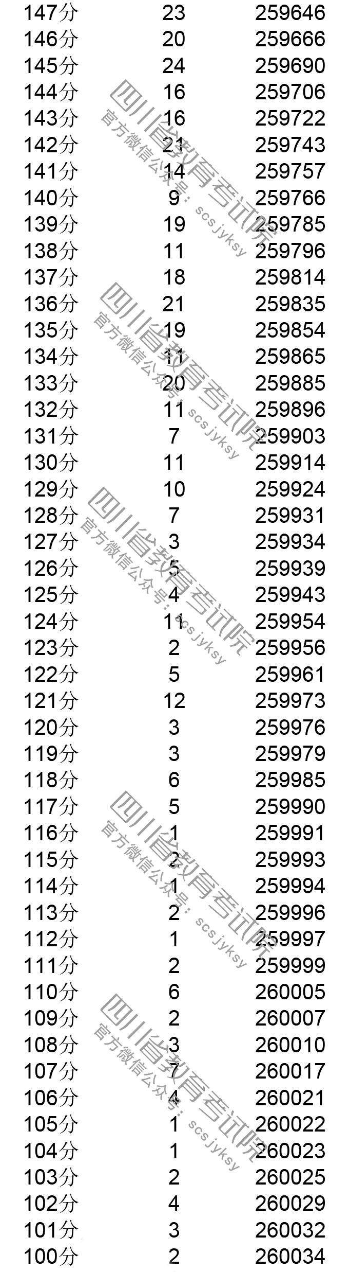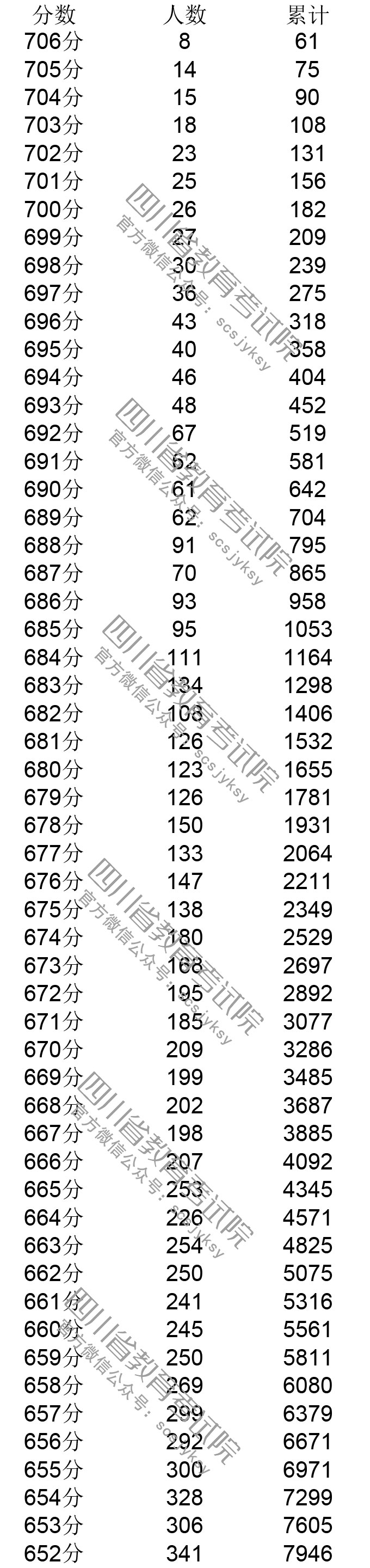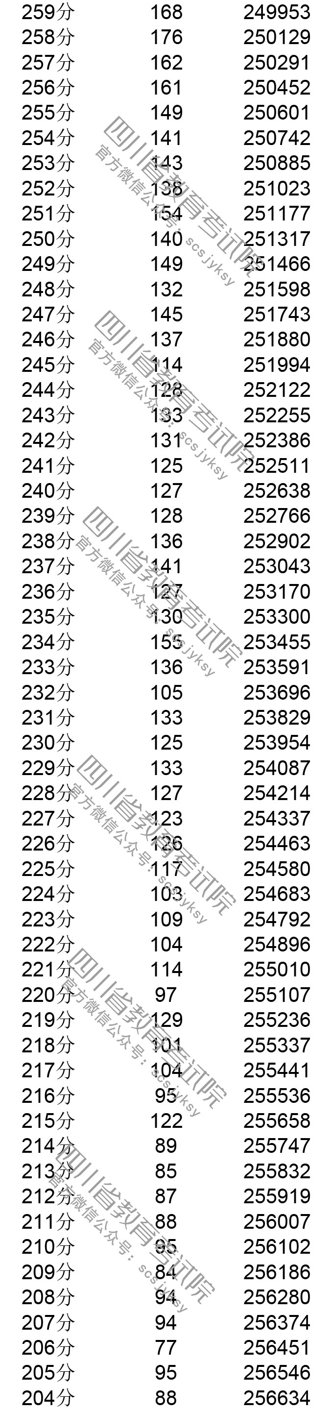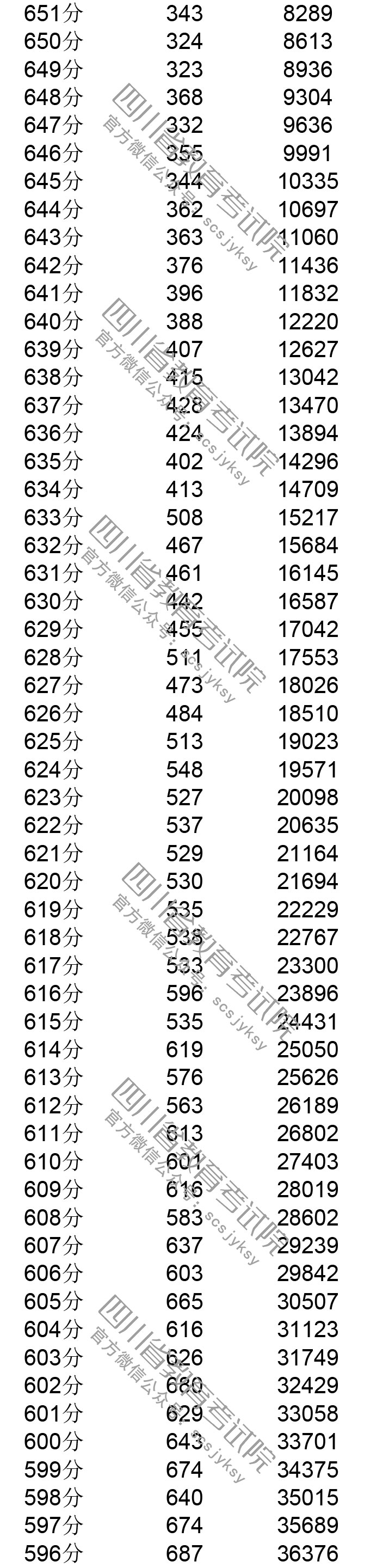 四川省2019年普通高考理科成绩分段统计表