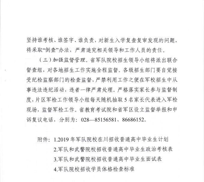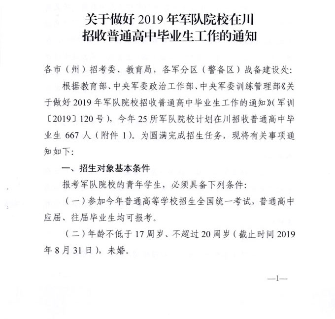 关于做好2019年军队院校在川招收普通高中毕业生工作的通知