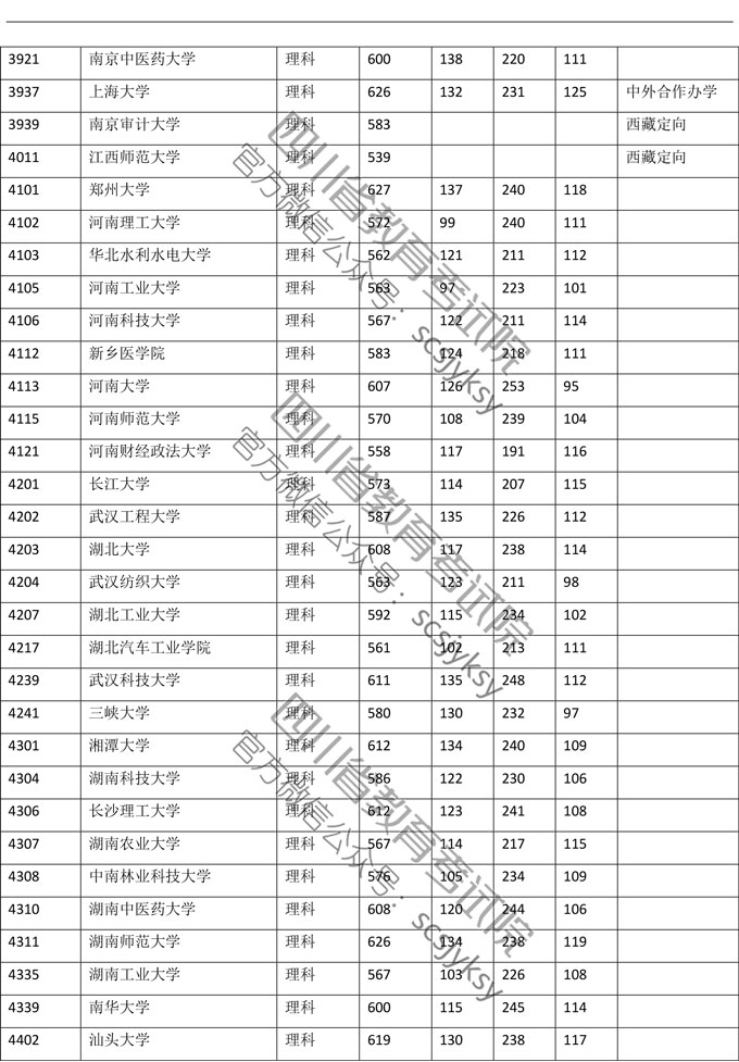 2019年普通高校在川招生本科一批院校录取调档线