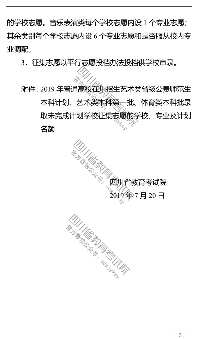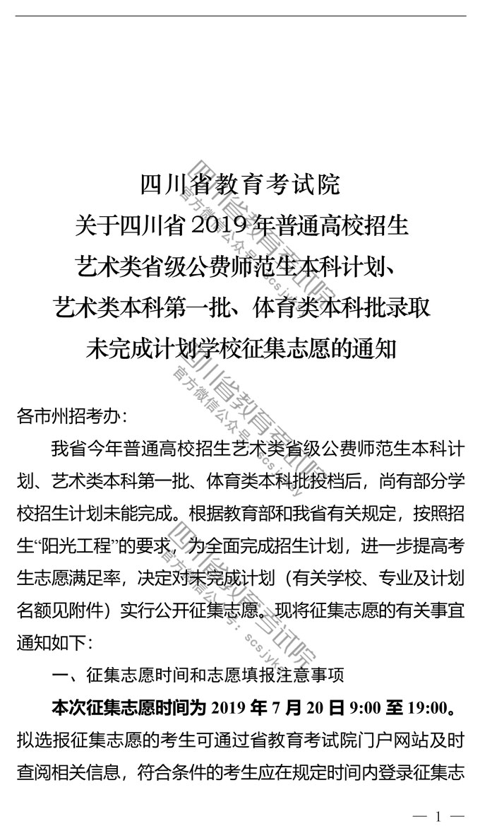 关于普通高校招生艺术类省级公费师范生本科计划、 艺术类本科第一批、体育类本科批录取未完成计划学校征集志愿的通知