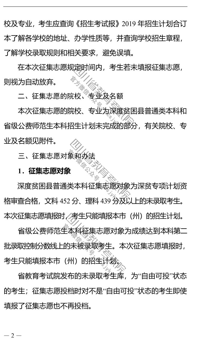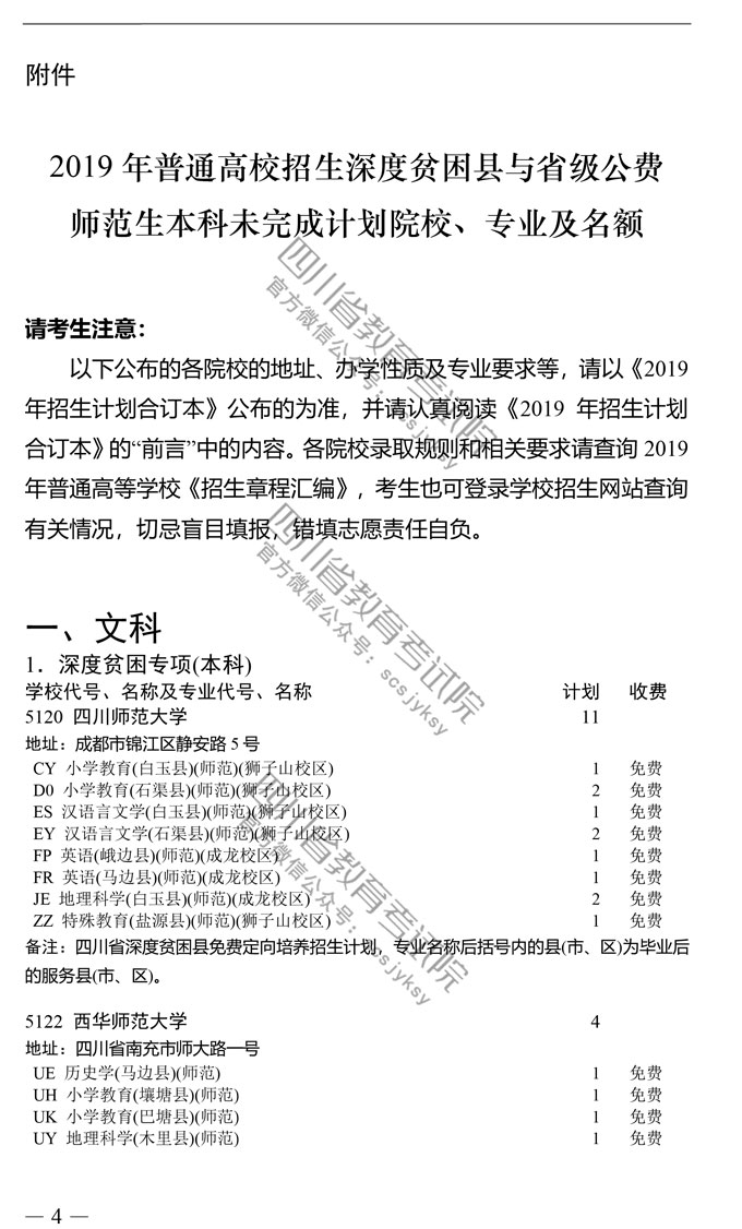 关于深度贫困县普通类本科和省级公费师范生本科未完成计划院校征集志愿的通知