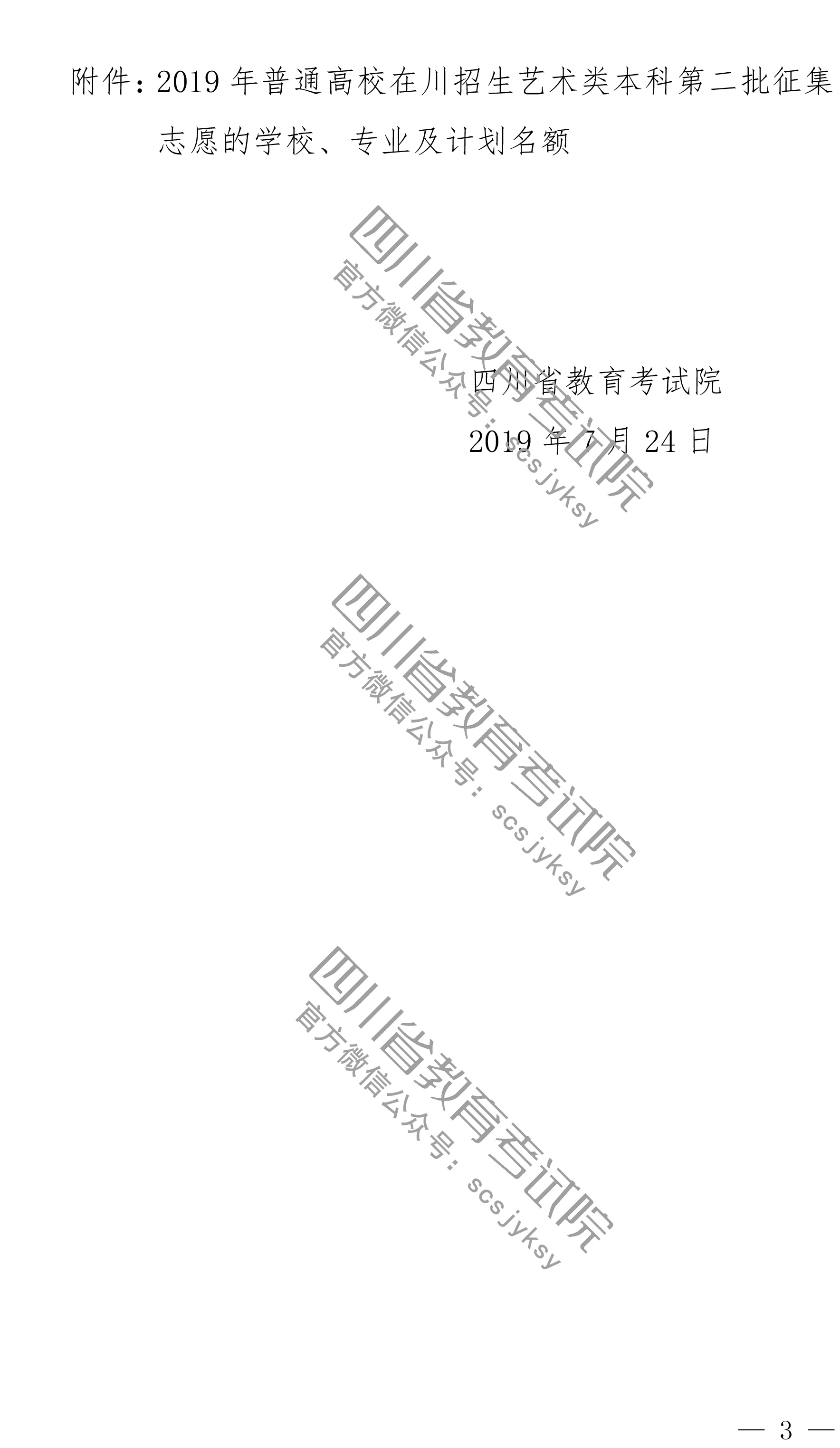 关于四川省2019年普通高校艺术类专业招生本科第二批录取学校未完成计划征集志愿的通知