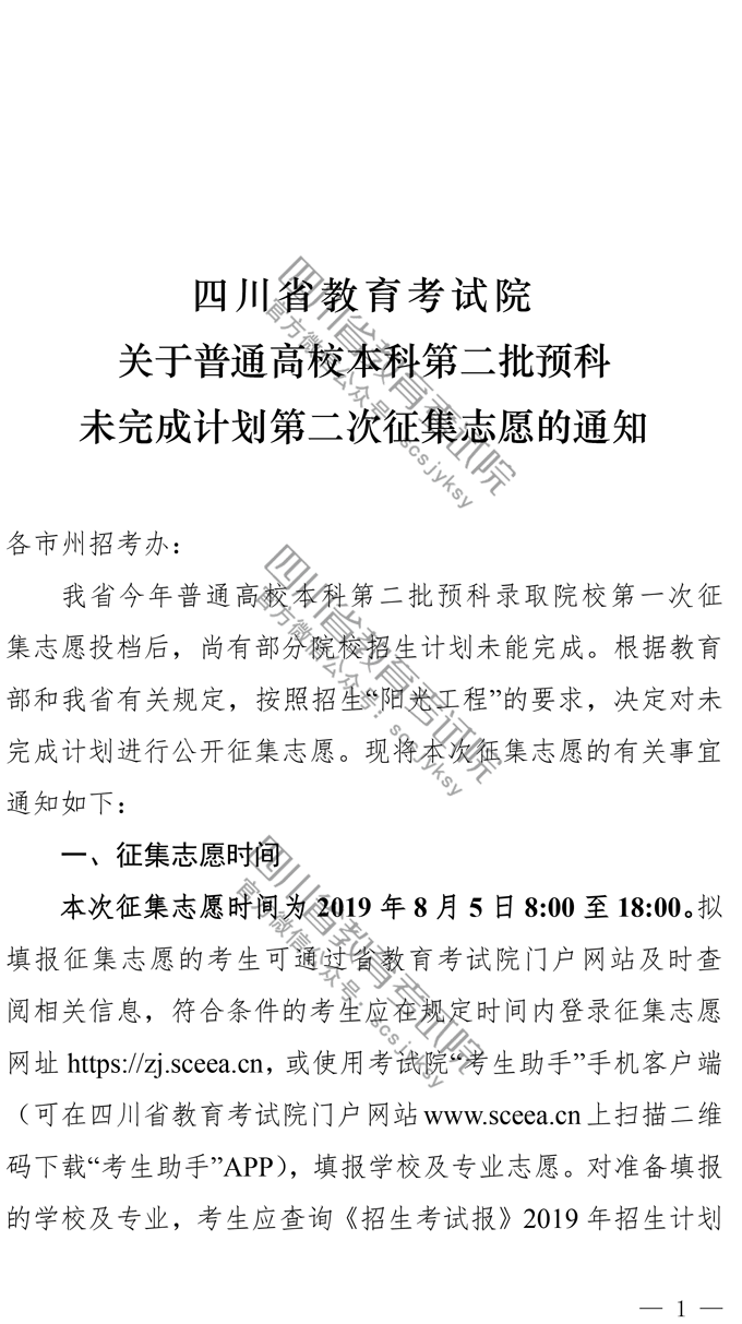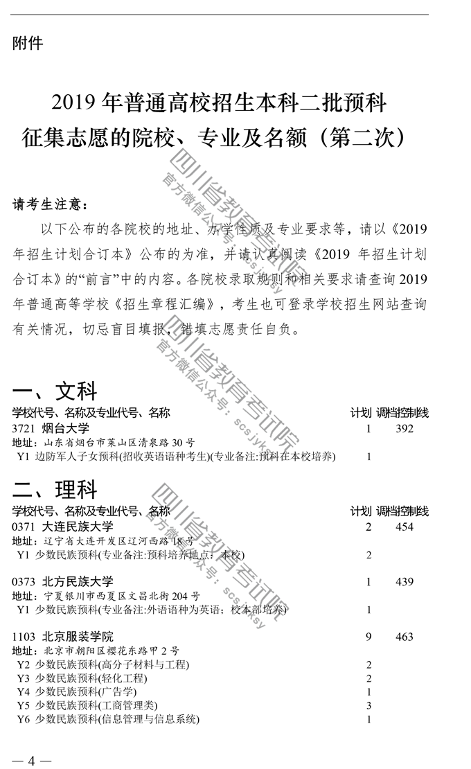 关于普通高校本科第二批预科未完成计划第二次征集志愿的通知