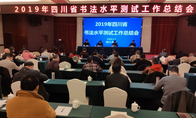 为总结2019年四川省书法水平测试工作经验、推动项目进一步发展,2020年1月7日,我省在南充市召开了2019年书法水平测试工作总结会。省教育考试院院长刘敏,省硬笔书法家协会主席王圣才,省书法家协会副主席王道义出席会议,省教育考试院党委委员王强主持会议。