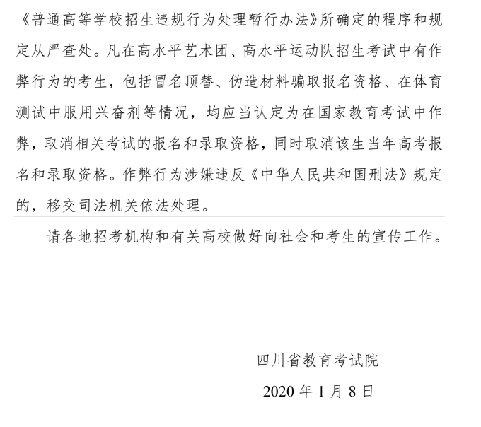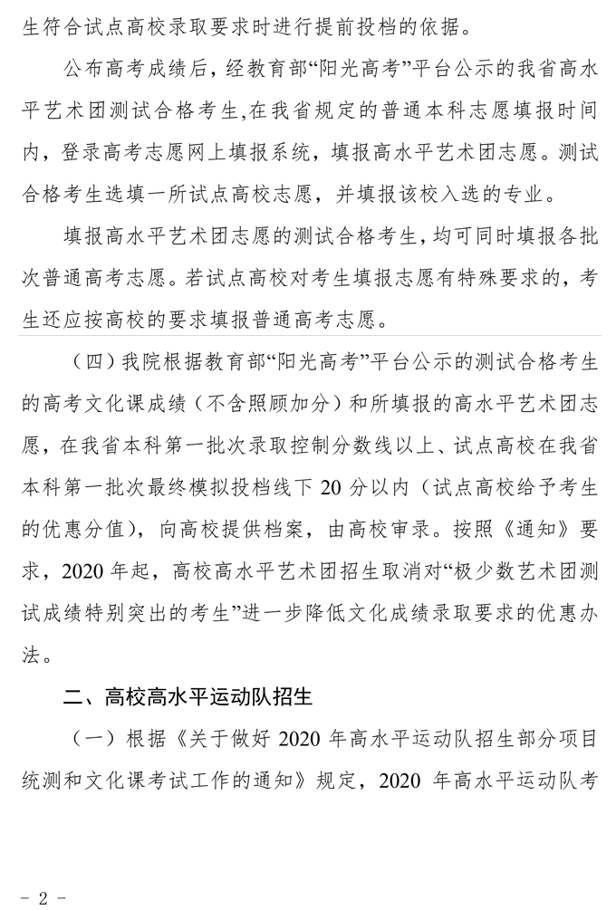 关于做好我省2020年普通高校高水平艺术团、高水平运动队招生工作的通知