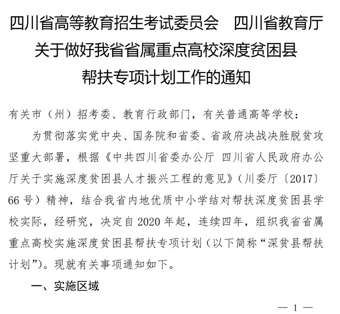 关于做好我省省属重点高校深度贫困县帮扶专项计划工作的通知