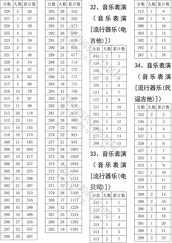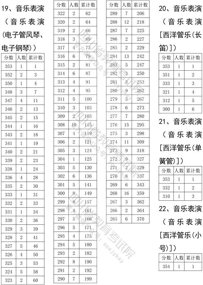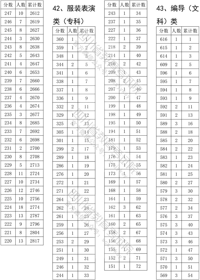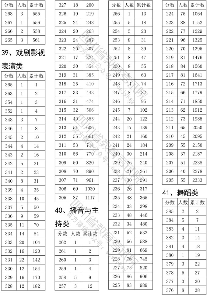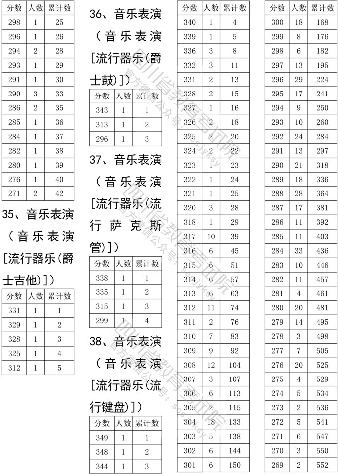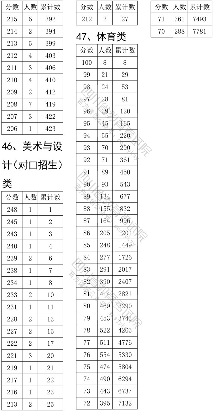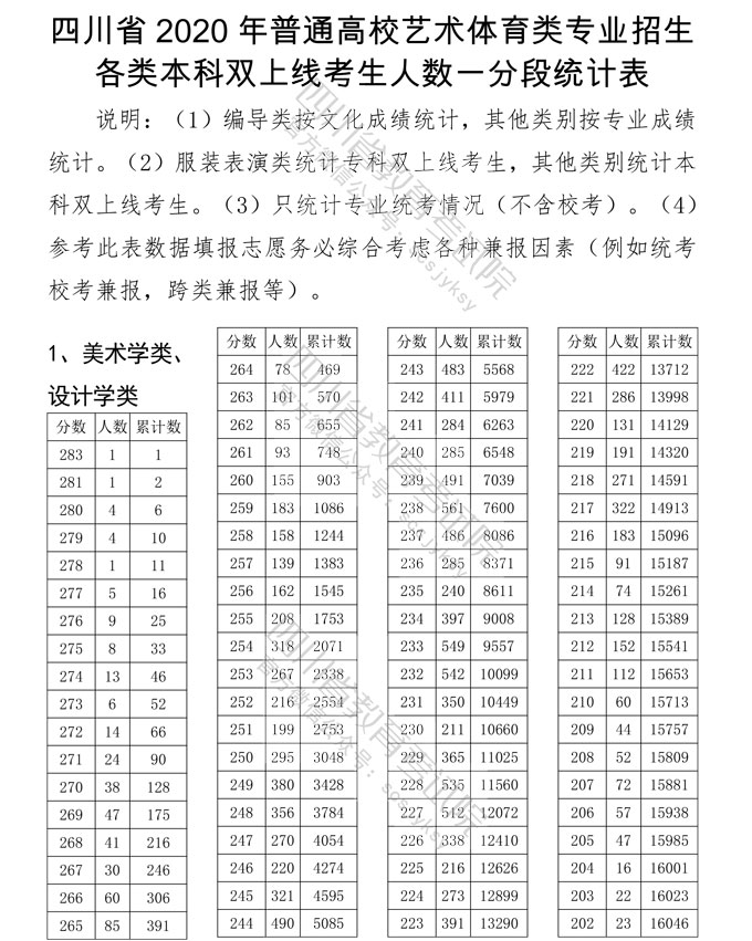 四川省2020年普通高校艺术体育类专业招生各类本科双上线考生人数一分段统计表