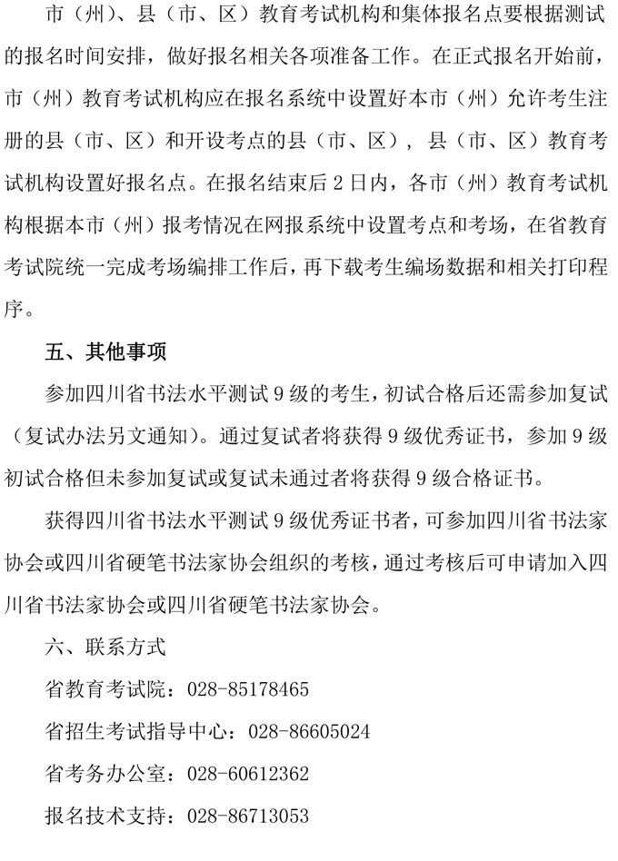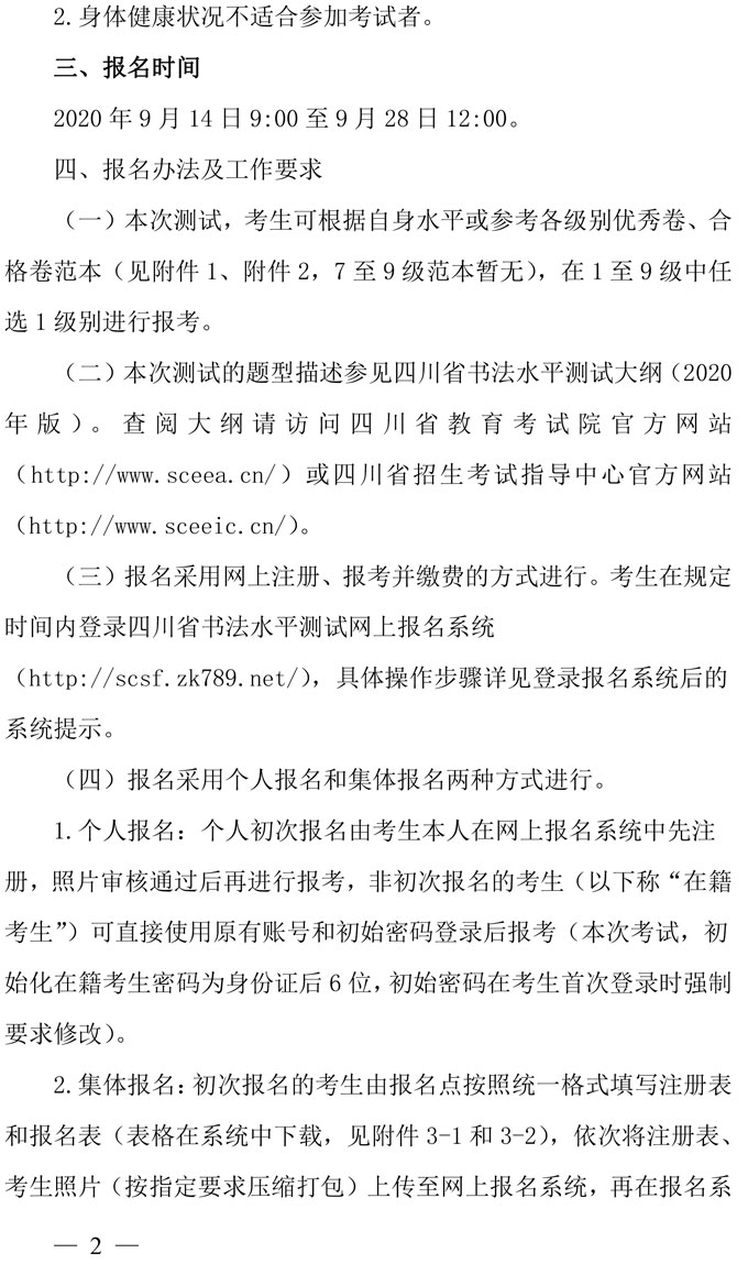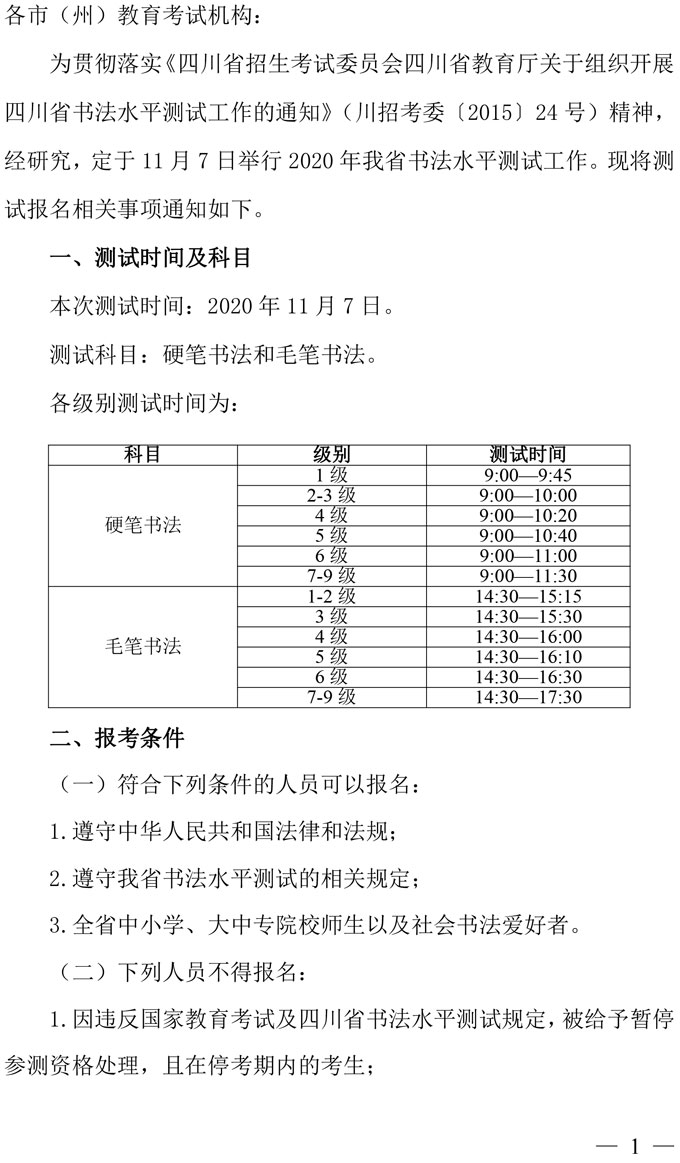 关于开展2020年四川省书法水平测试报名工作的通知