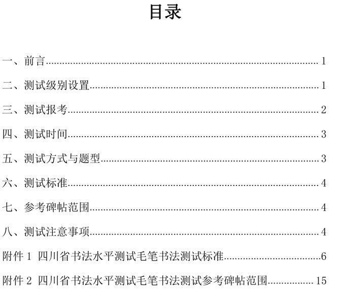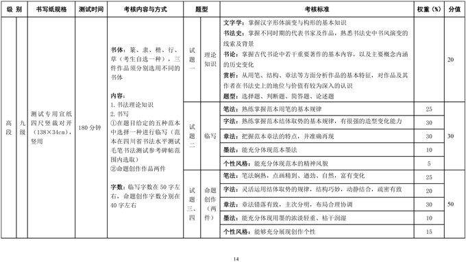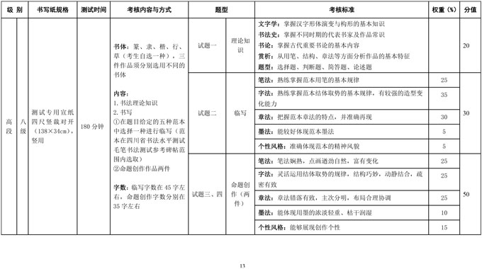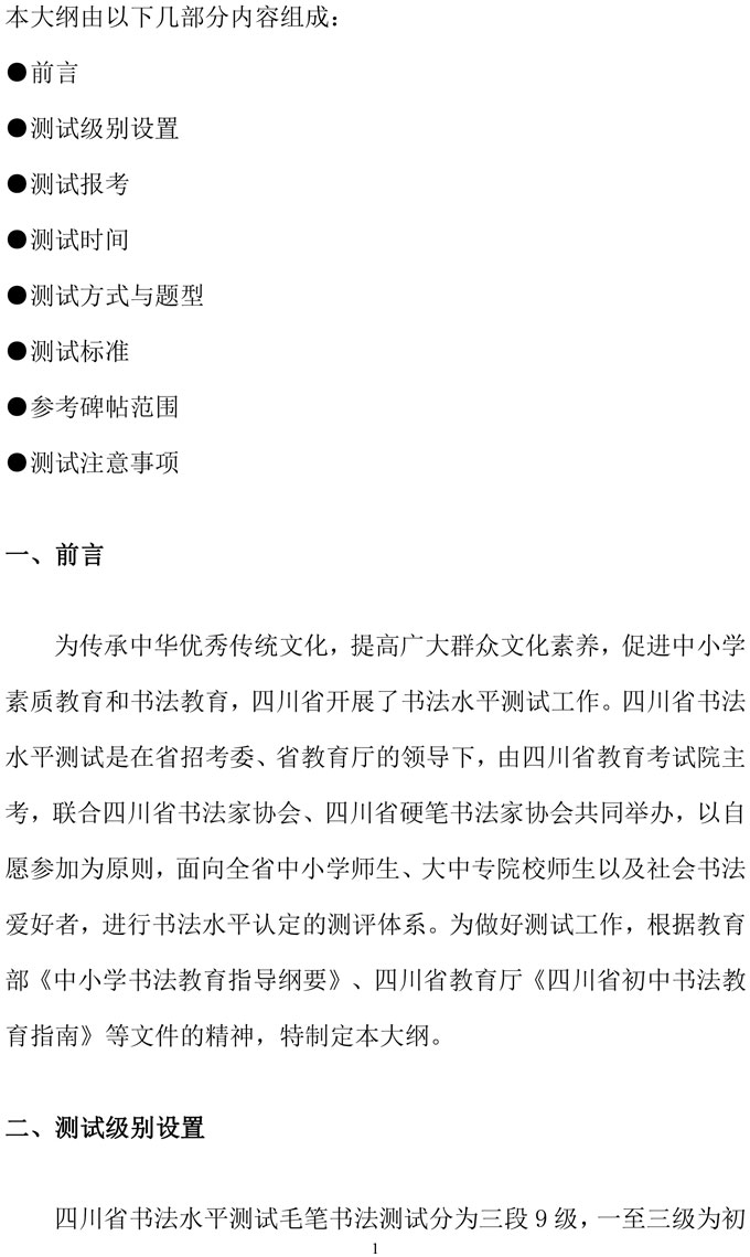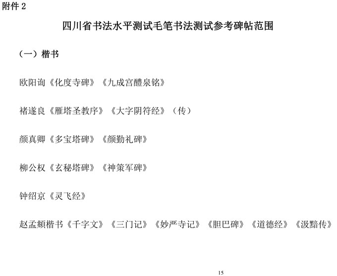 四川省书法水平测试毛笔书法测试大纲 (2020年版)