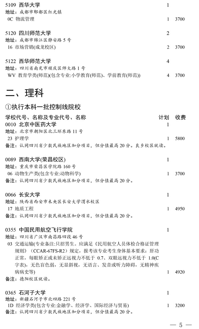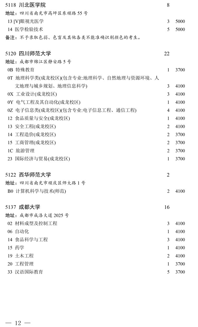 四川省2025年普通高校专升本招生专业及计划