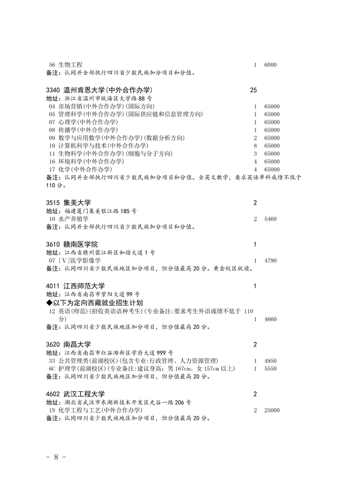 1.定向西藏就业招生未完成计划征集志愿对象为高考成绩在学校调档线下40分以内且在第一次志愿填报时填写了《四川省普通高校招生考生报考定向西藏就业志愿申请书》的未被录取考生。