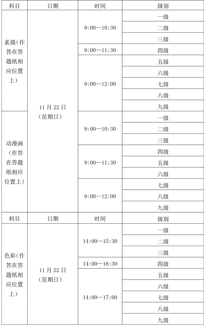 2020年下半年书画等级考试将于11月21日至22日举行,现将我省报考有关事宜通告如下。