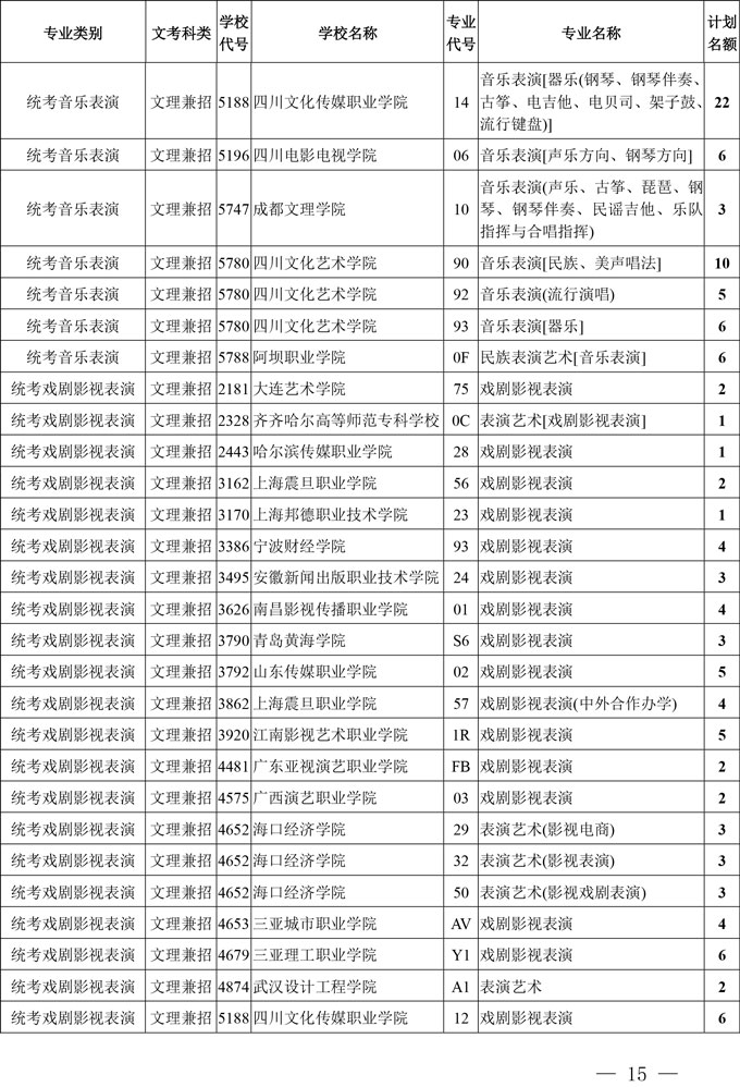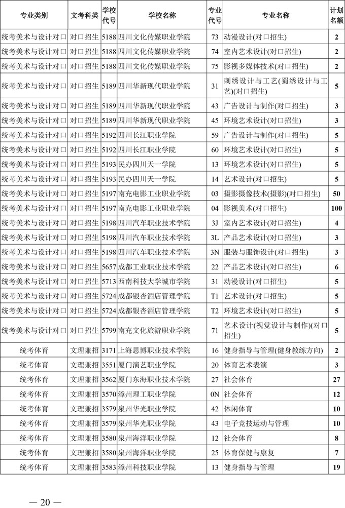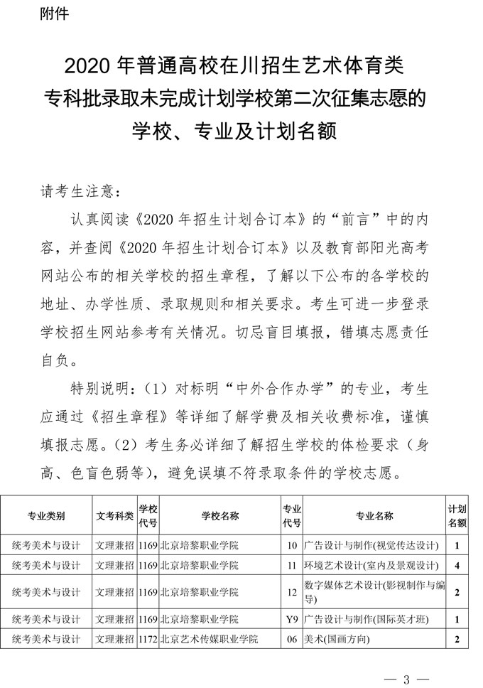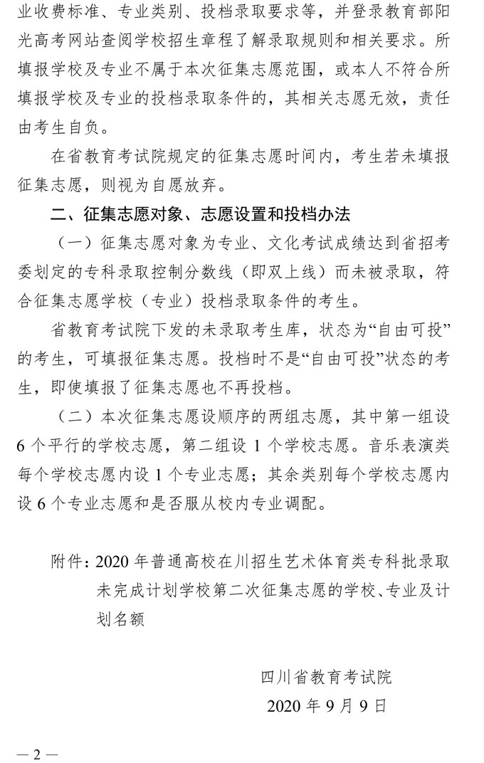 关于四川省2020年普通高校招生艺术体育类专科批录取未完成计划学校第二次征集志愿的通知
