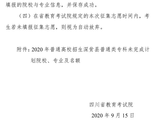 关于深贫县普通类专科未完成计划院校征集志愿的通知