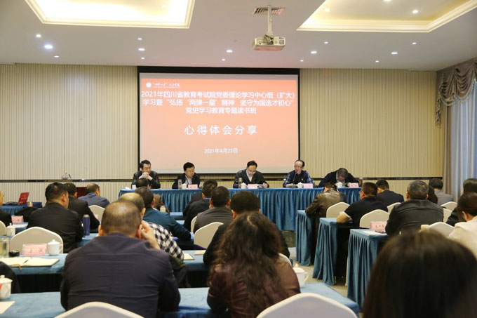 4月20日至4月23日,省教育考试院党委2021年第二次理论学习中心组(扩大)学习暨党史学习教育专题读书班在绵阳“两弹一星”干部学院举行。