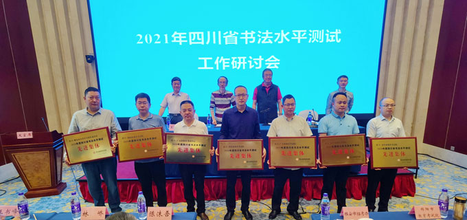 宜宾、眉山、广元三地招考机构代表先进单位就组考、备考典型经验和做法进行了交流发言。省书法家协会、省硬笔书法家协会及省教育考试院领导为2020年四川省书法水平测试“先进集体”颁奖。