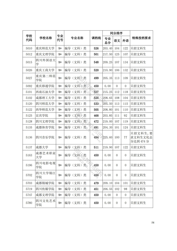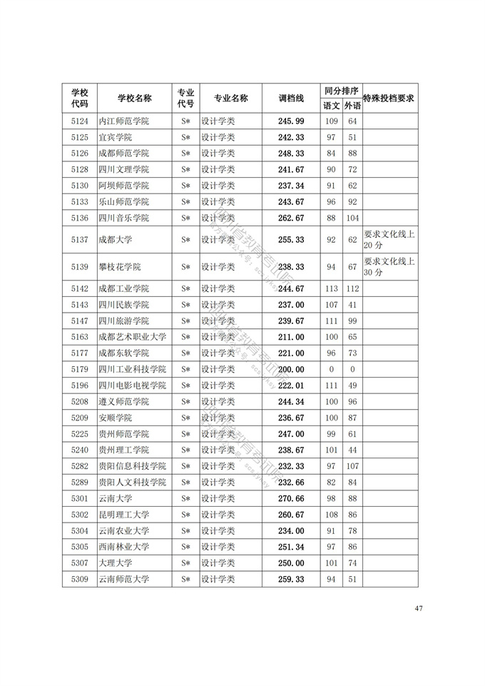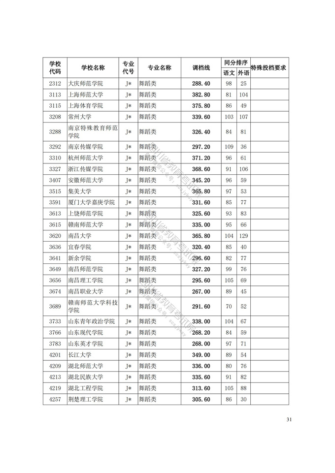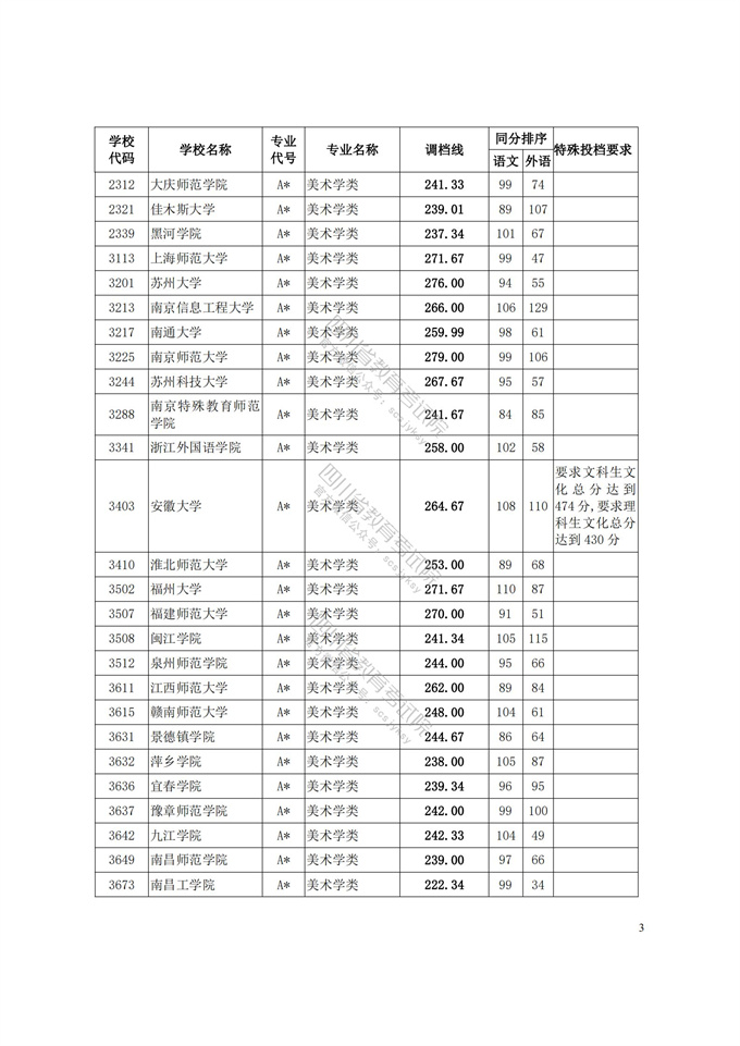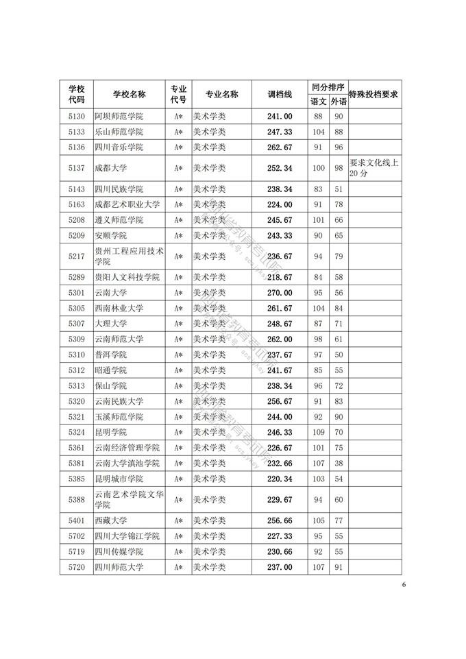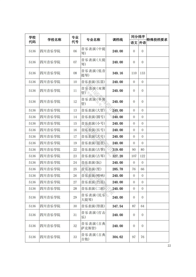 四川省2021年普通高等学校艺术体育类专业招生艺术类本科第一批、体育类本科批调档线