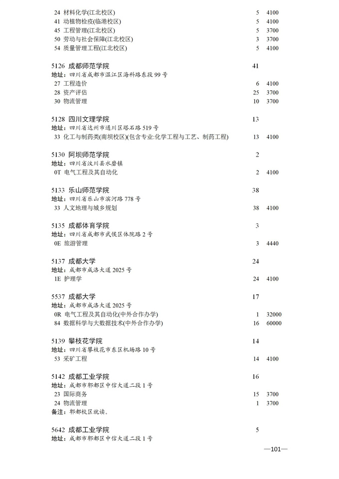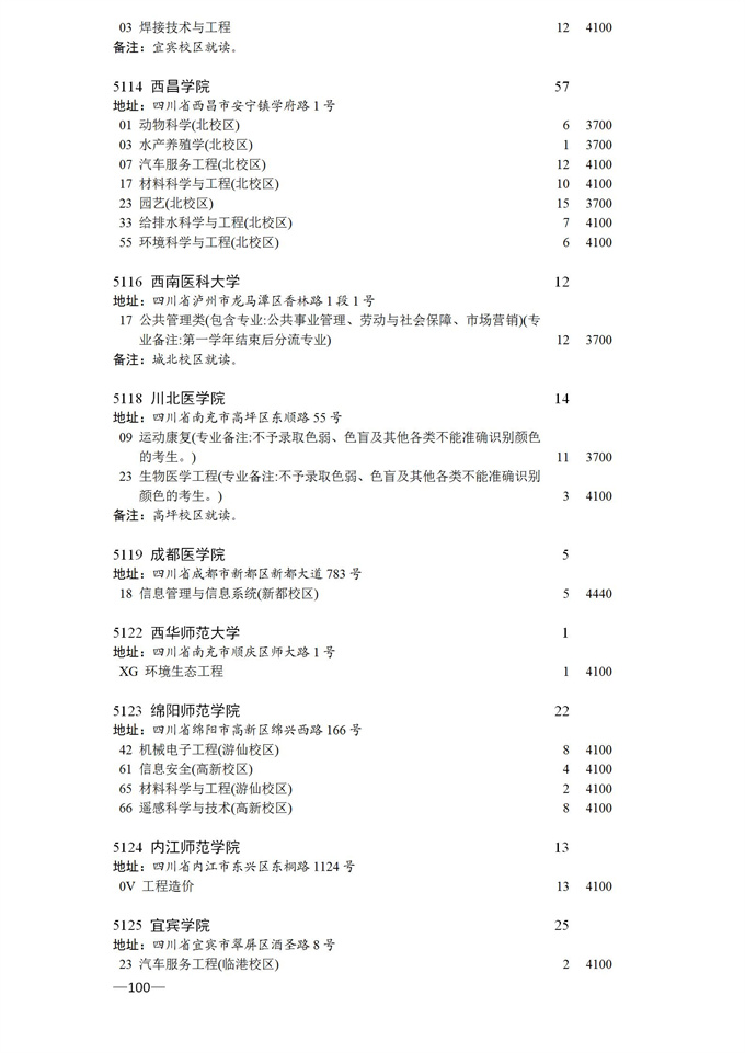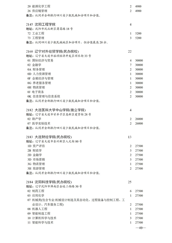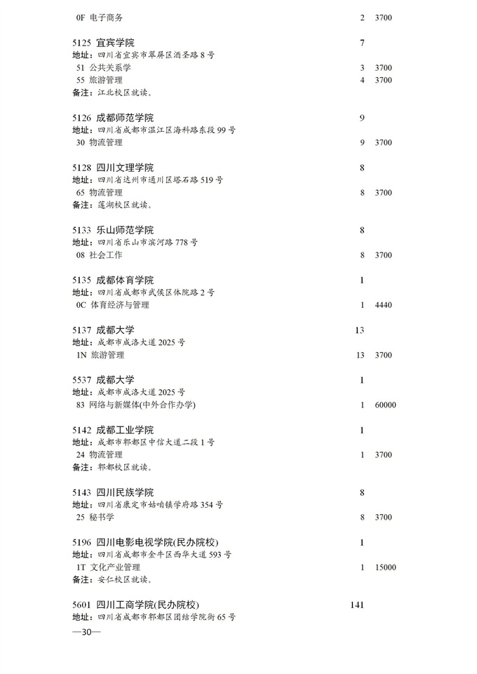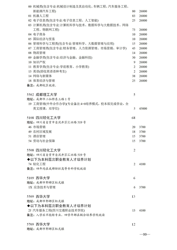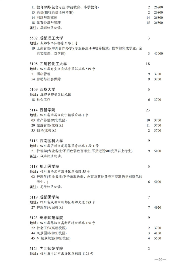 四川省2025年普通高校专升本招生专业及计划