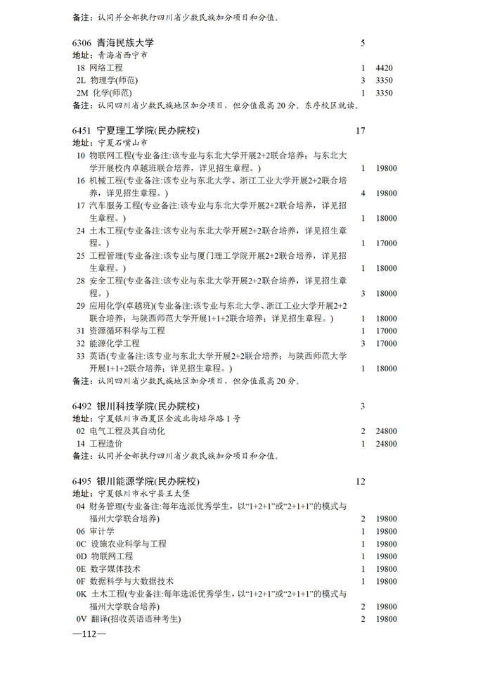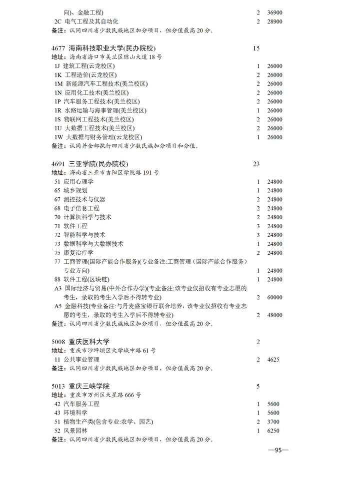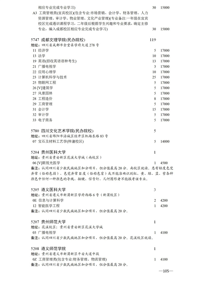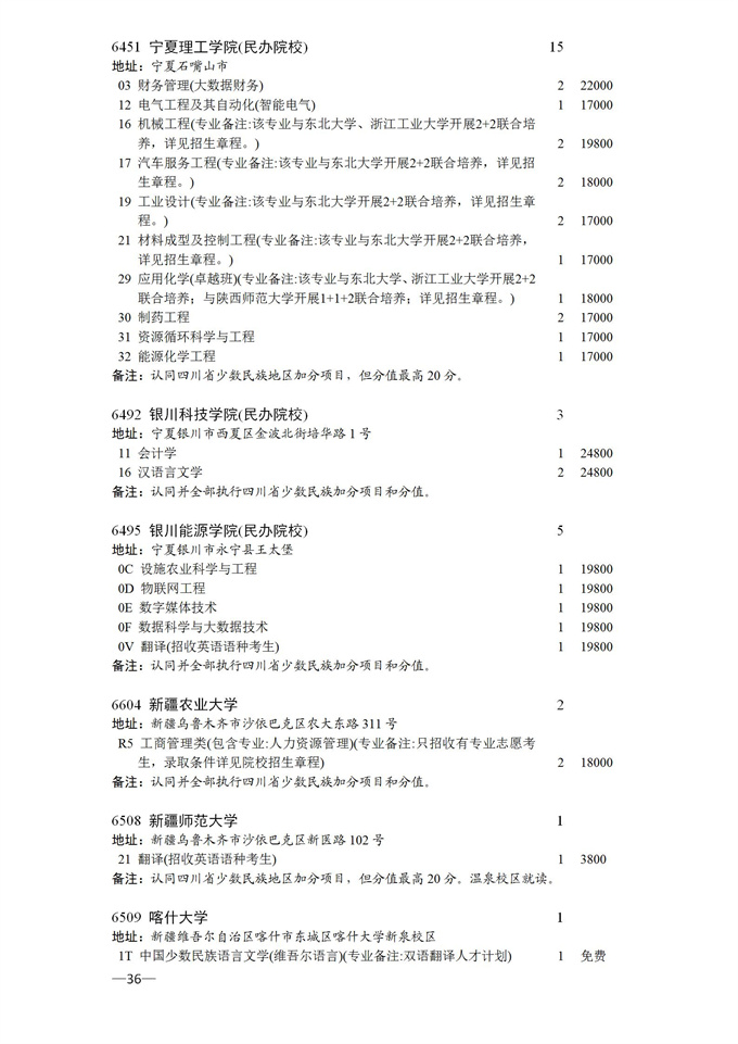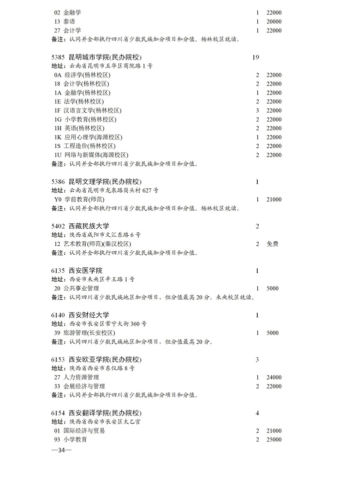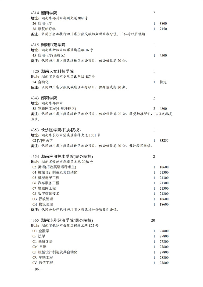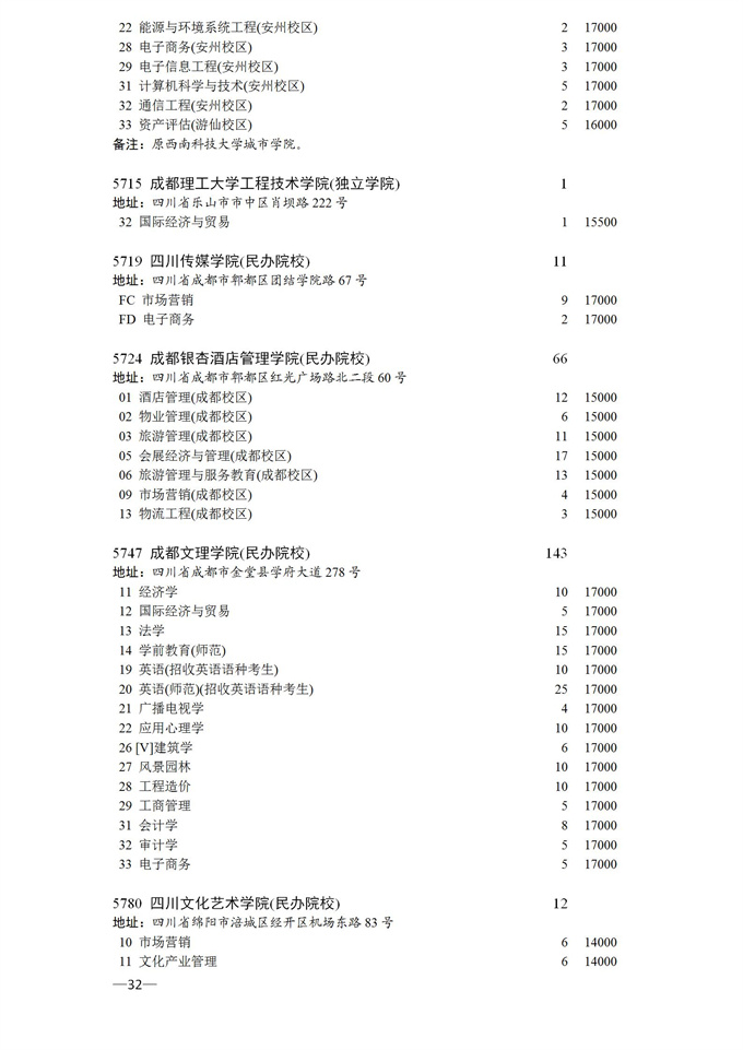 四川省2025年普通高校专升本招生专业及计划