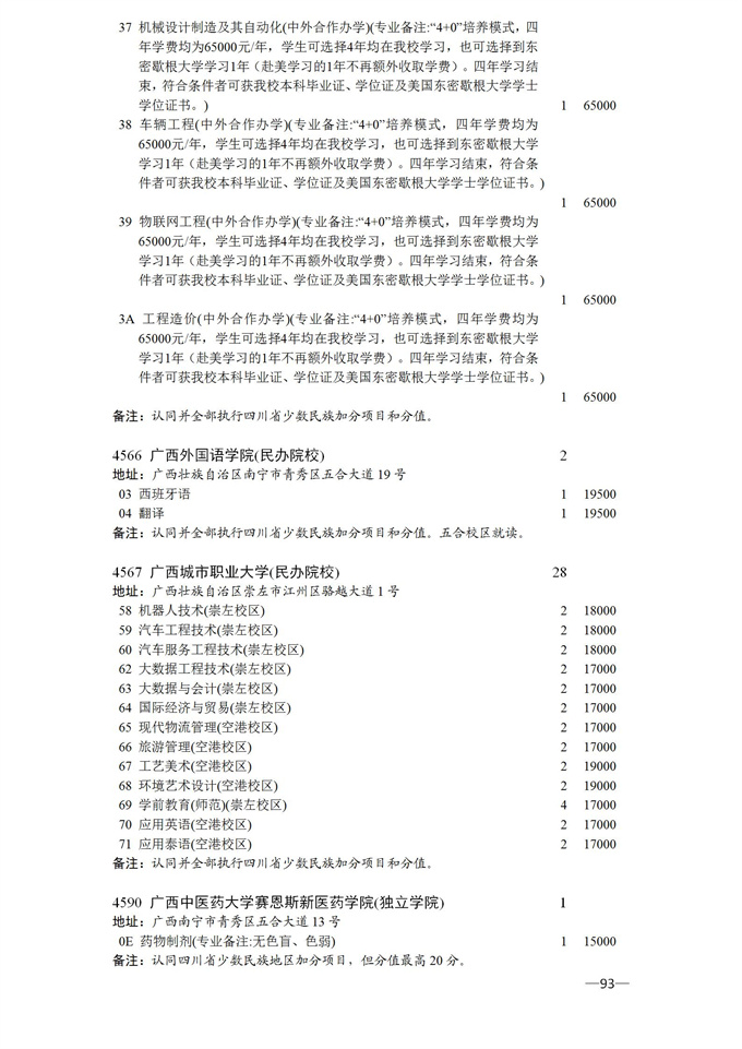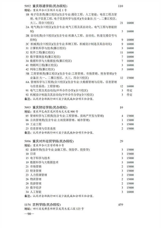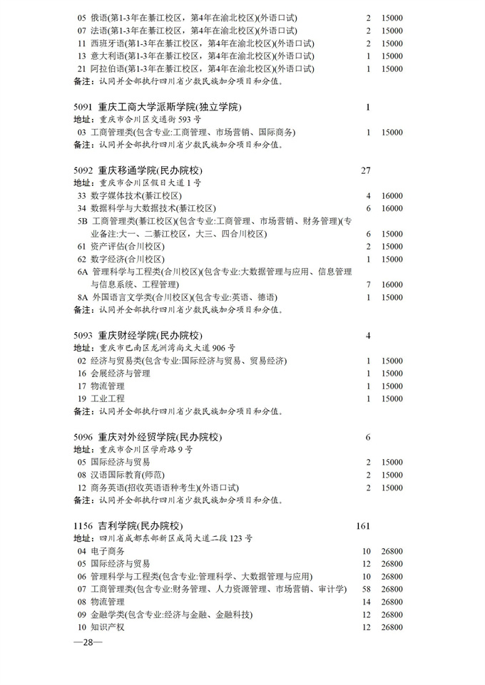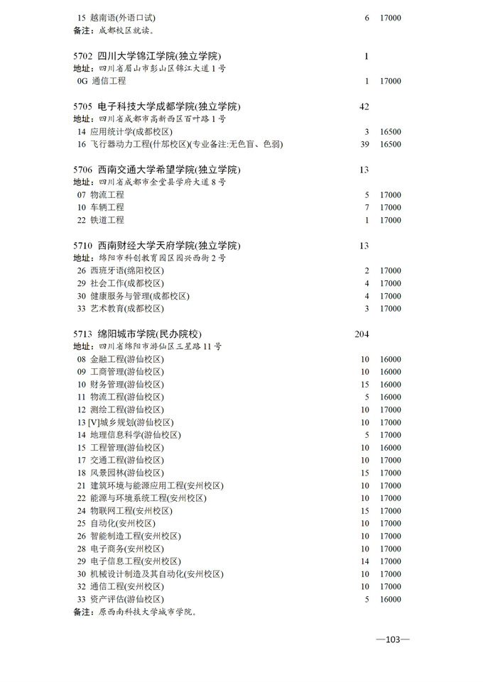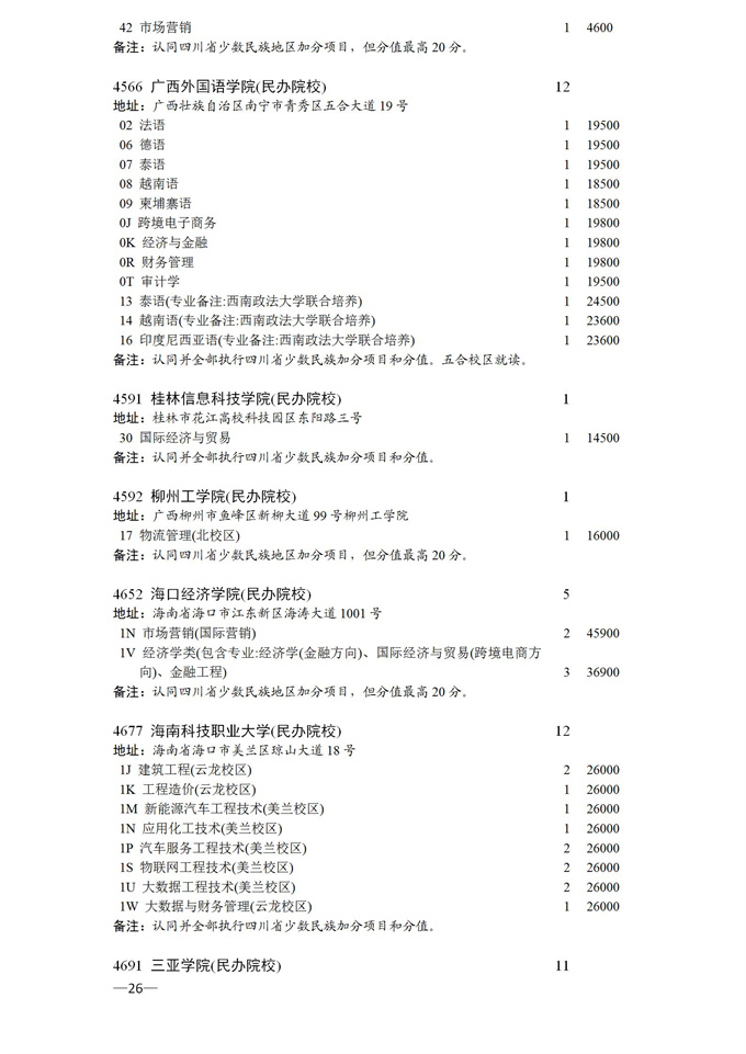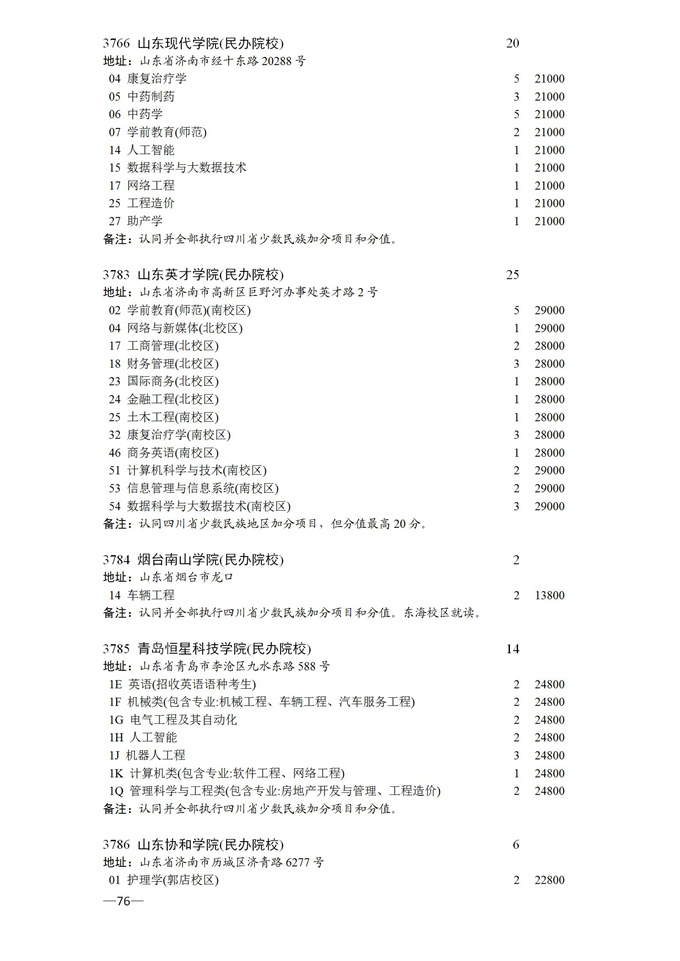 四川省2025年普通高校专升本招生专业及计划