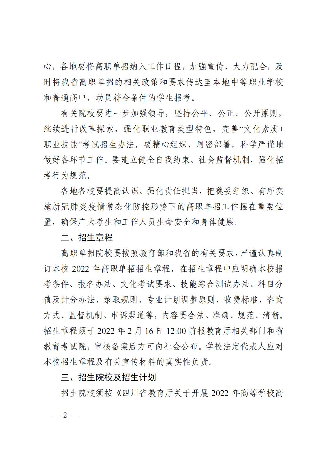 关于做好2022年普通高等学校高职教育单独招生工作的通知