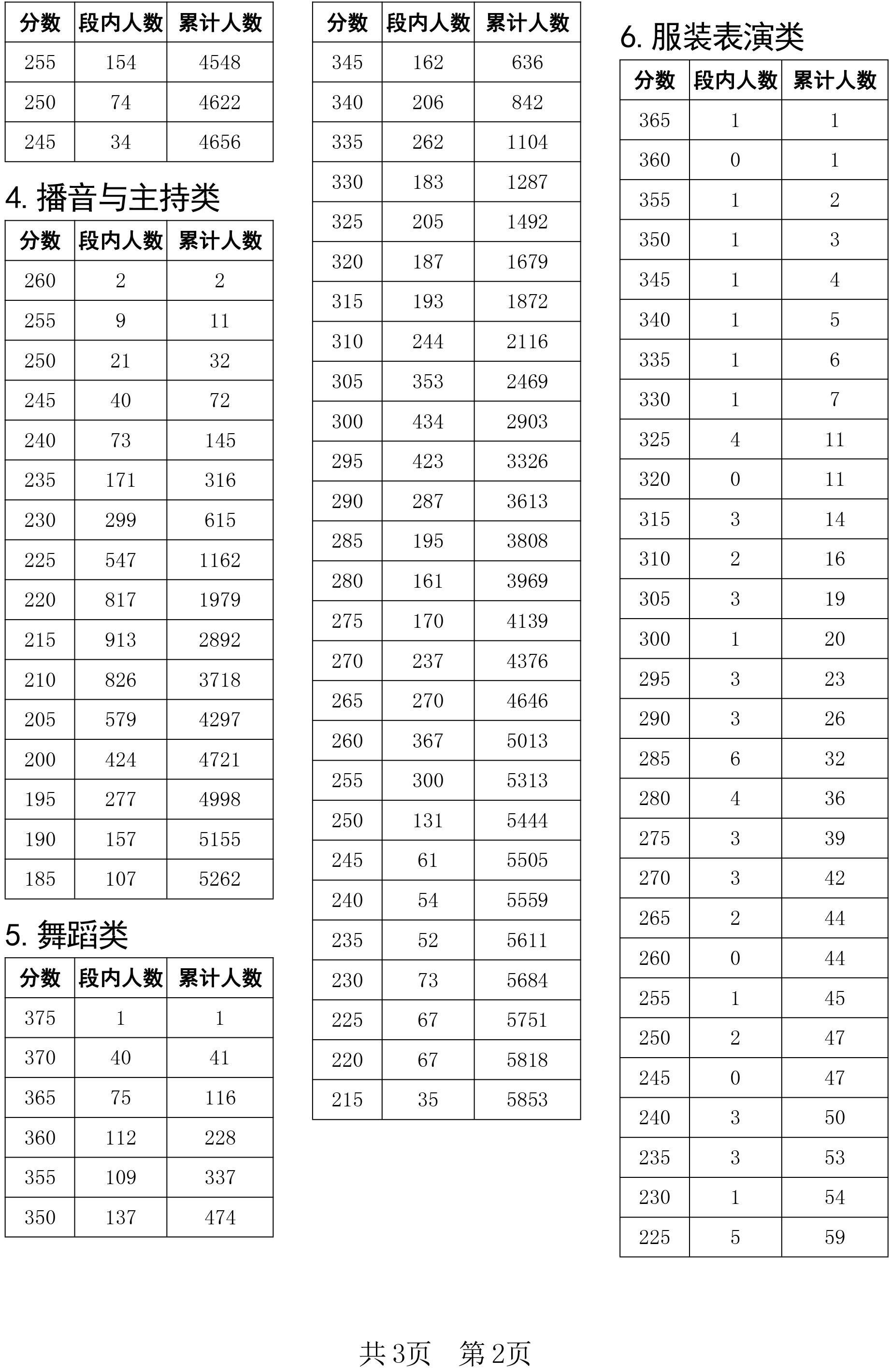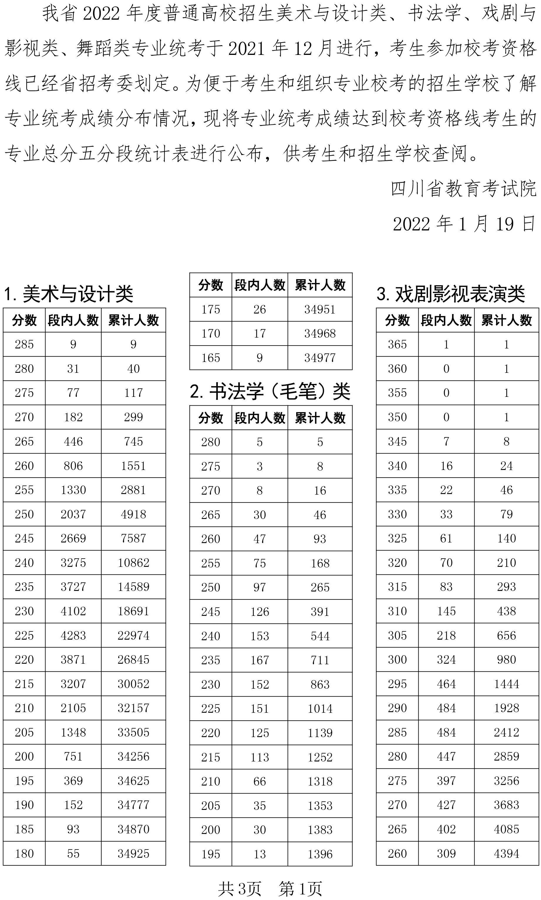 四川省2022年普通高校招生艺术类专业统考(美术与设计类、书法学、戏剧与影视类、 舞蹈类)成绩五分段统计表
