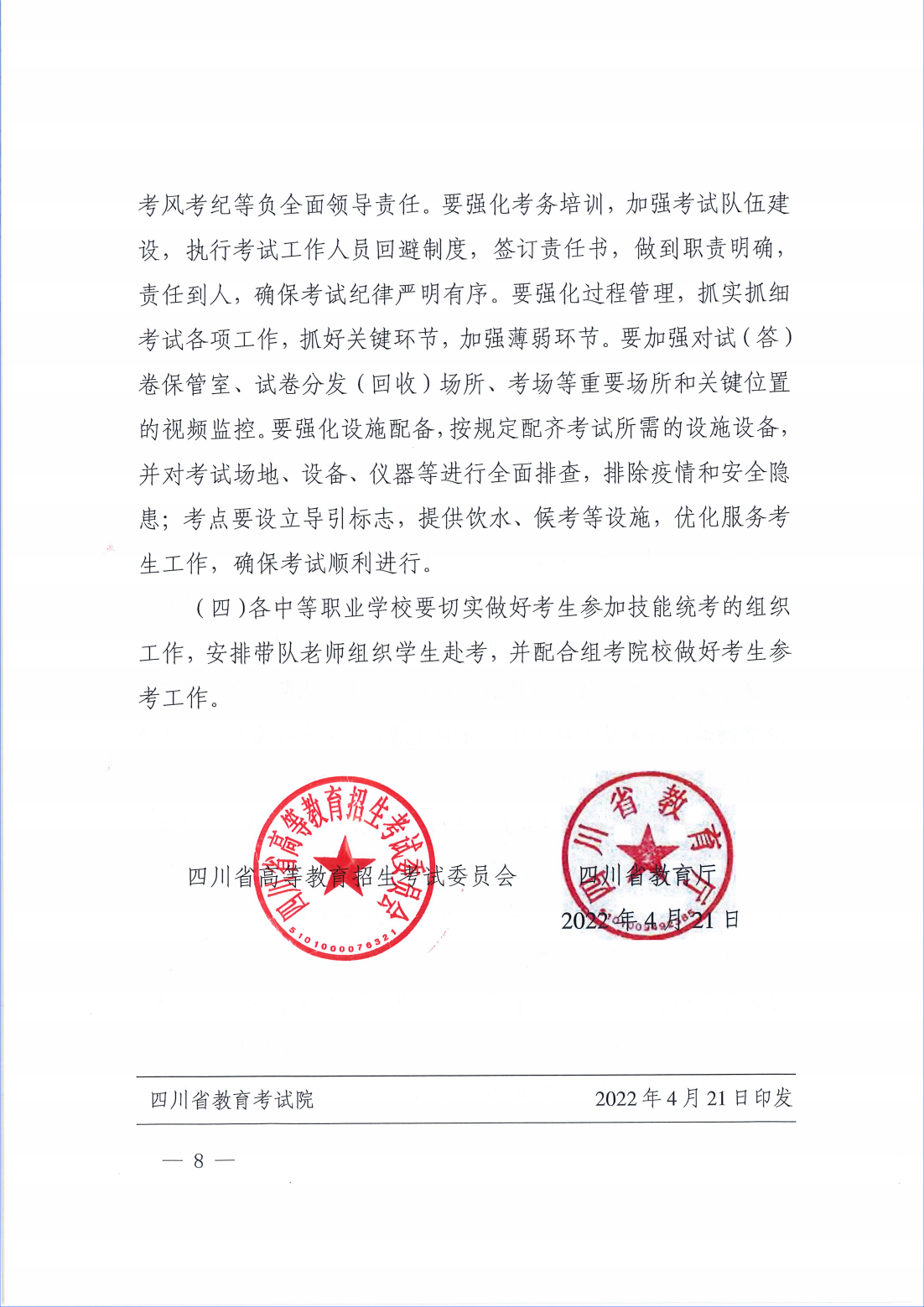 关于做好我省2022年普通高校对口招生职业技能统考工作的通知