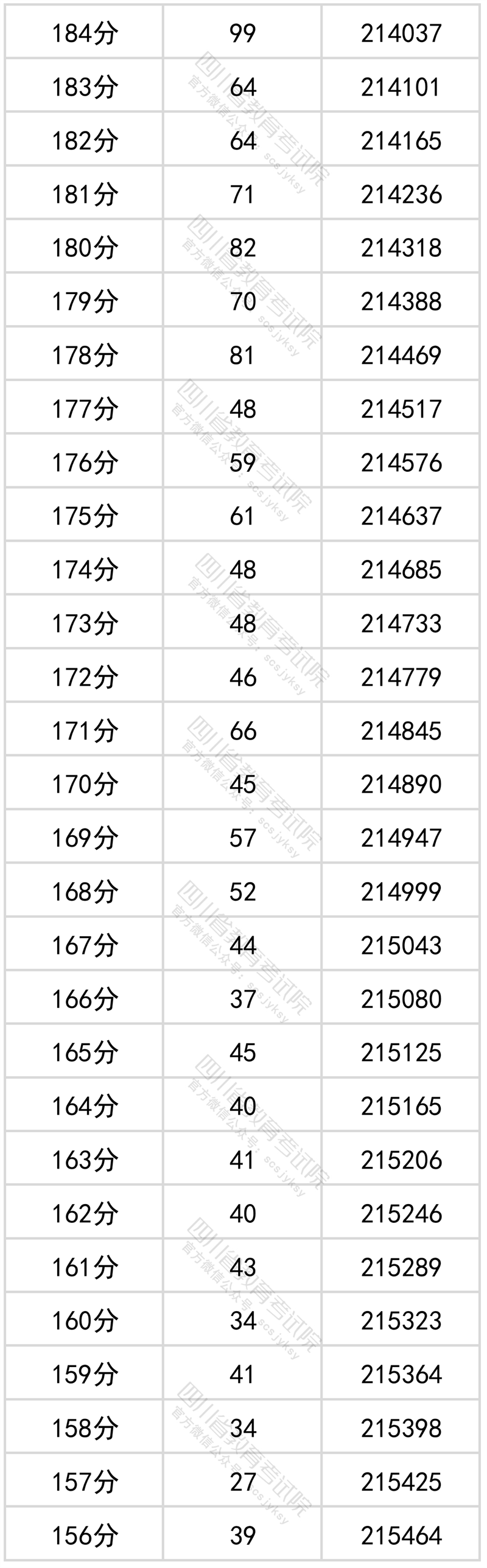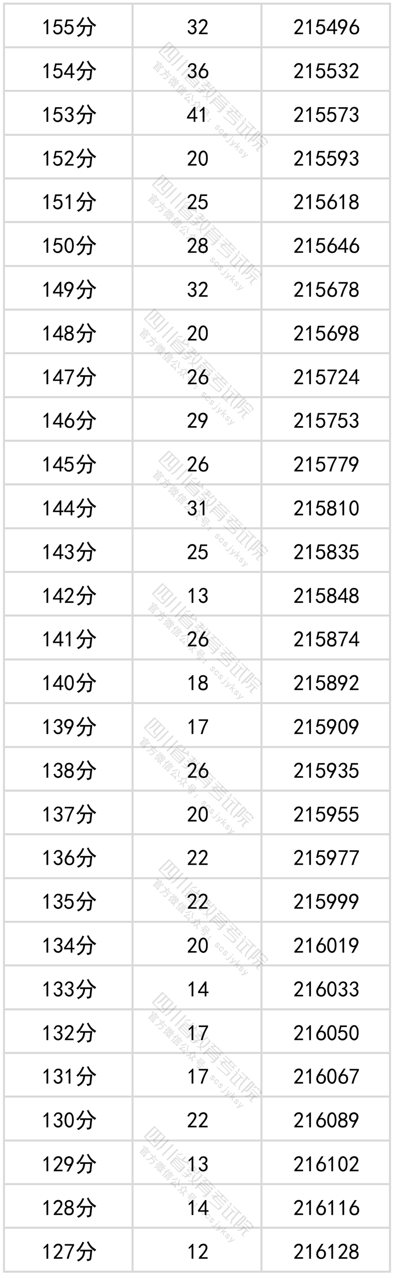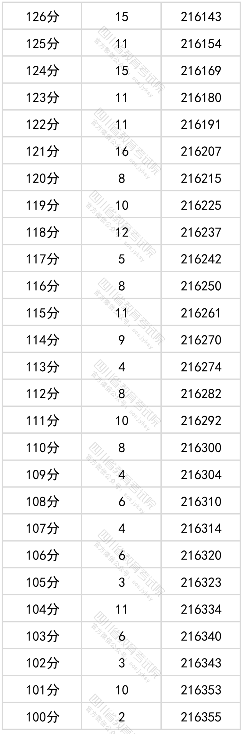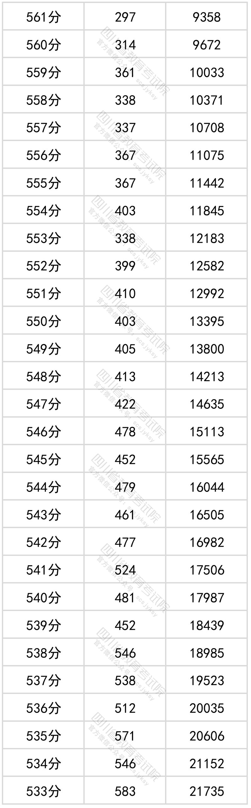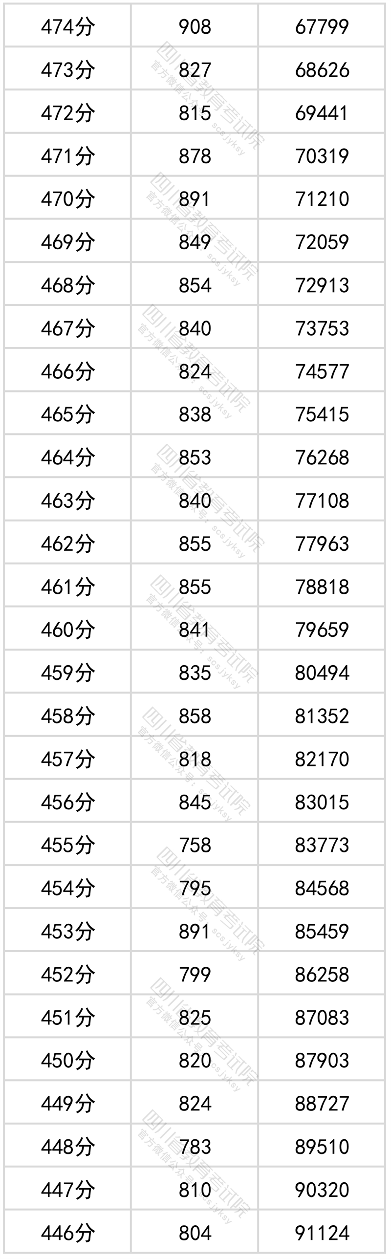 四川省2022年普通高考文科成绩分段统计表