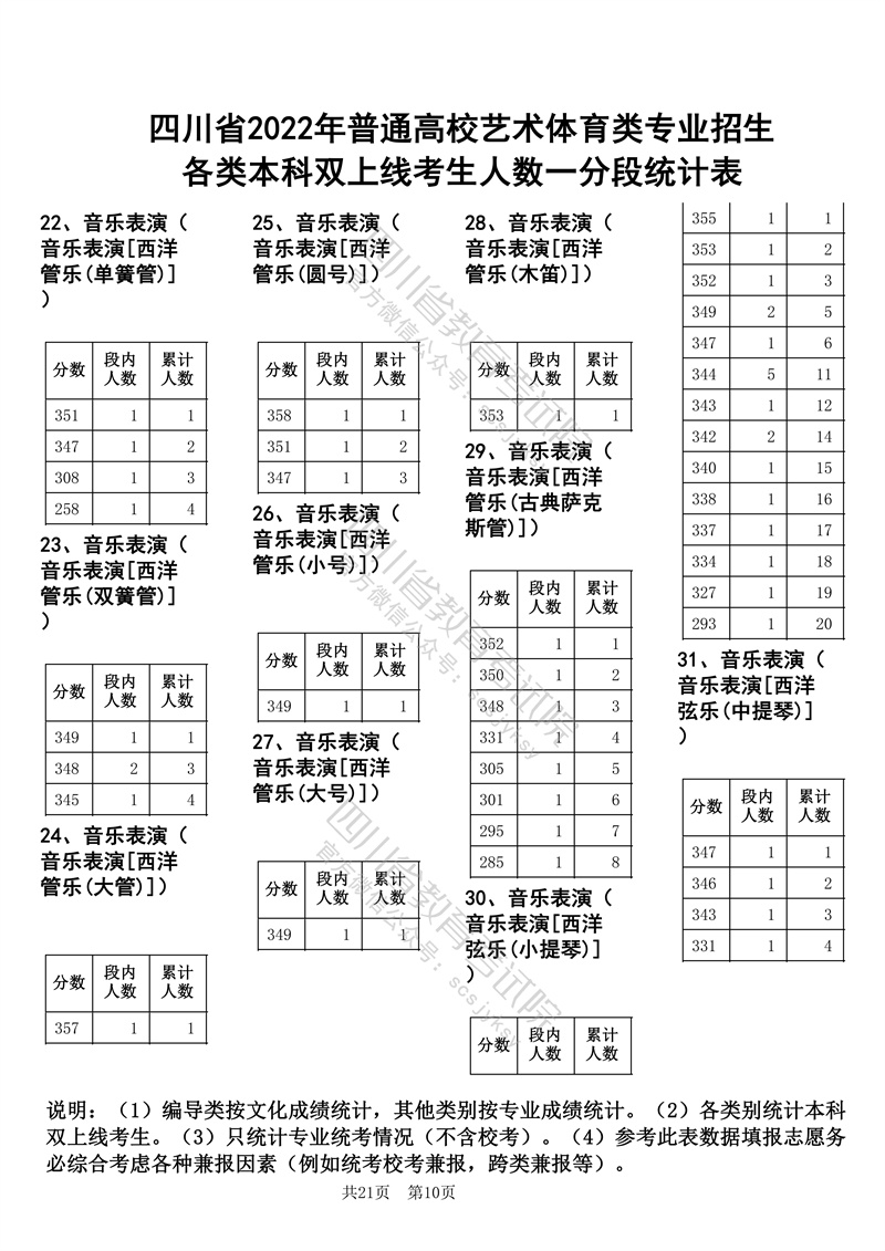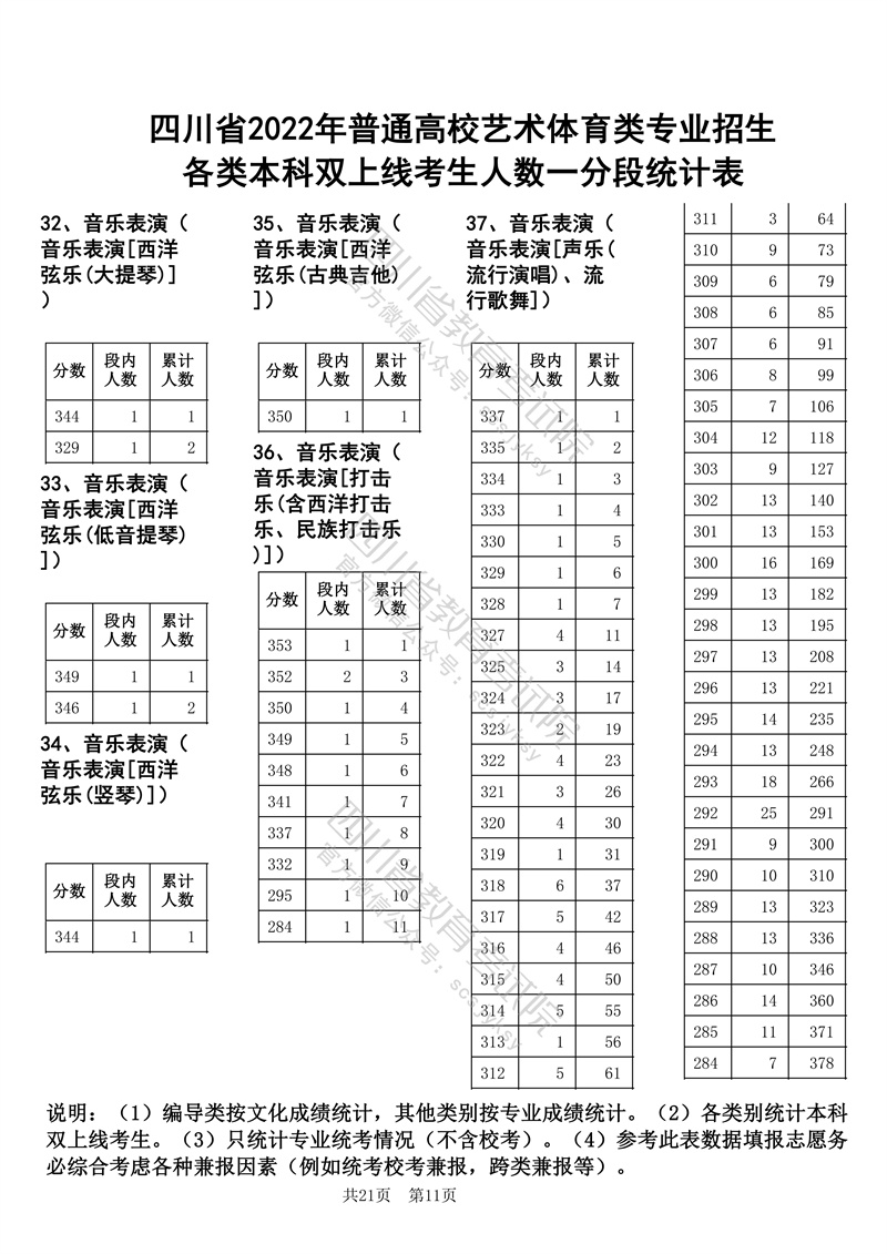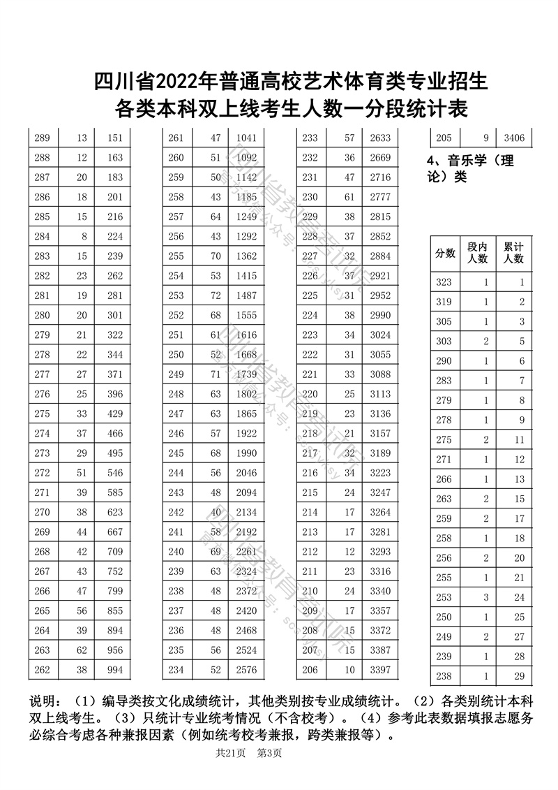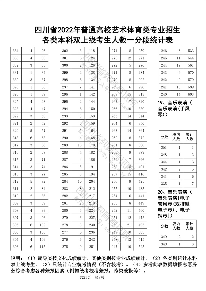 四川省2022年普通高校艺术体育类专业招生各类本科双上线考生人数一分段统计表