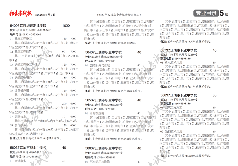 2022年招收中高职衔接五年贯通培养学校招生专业目录介绍