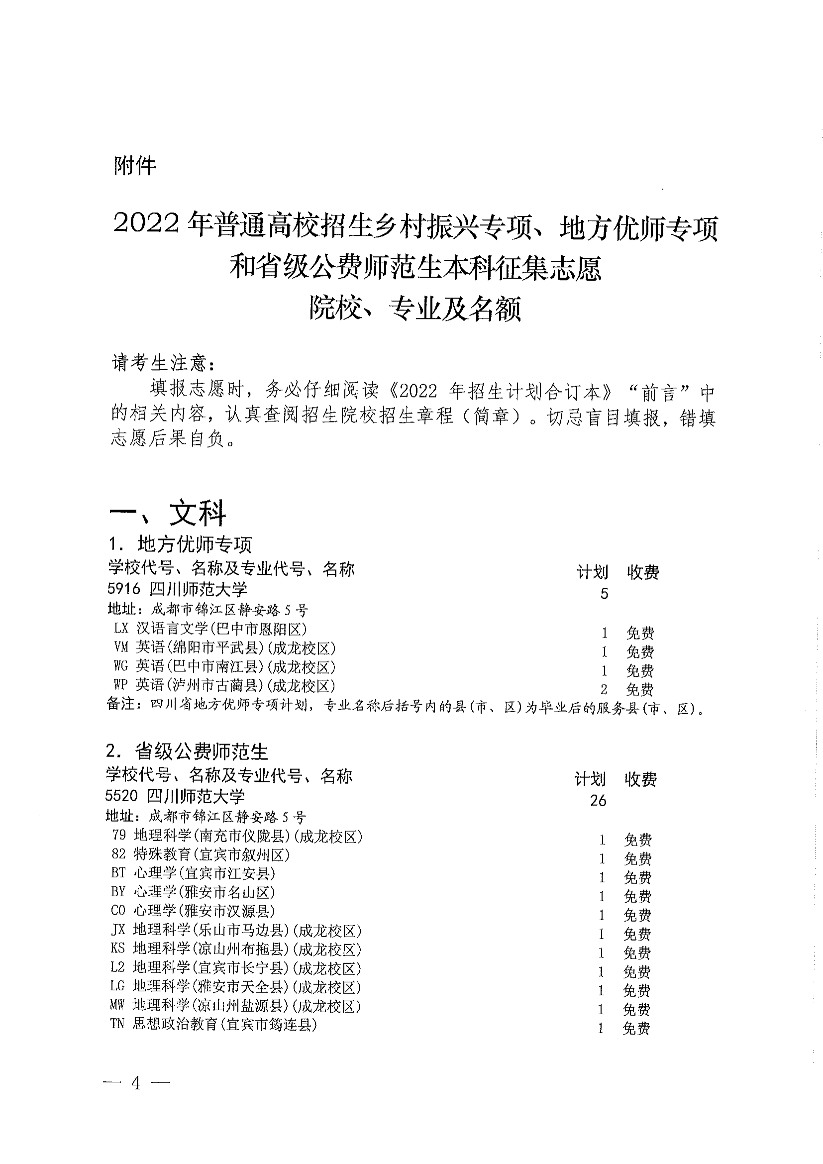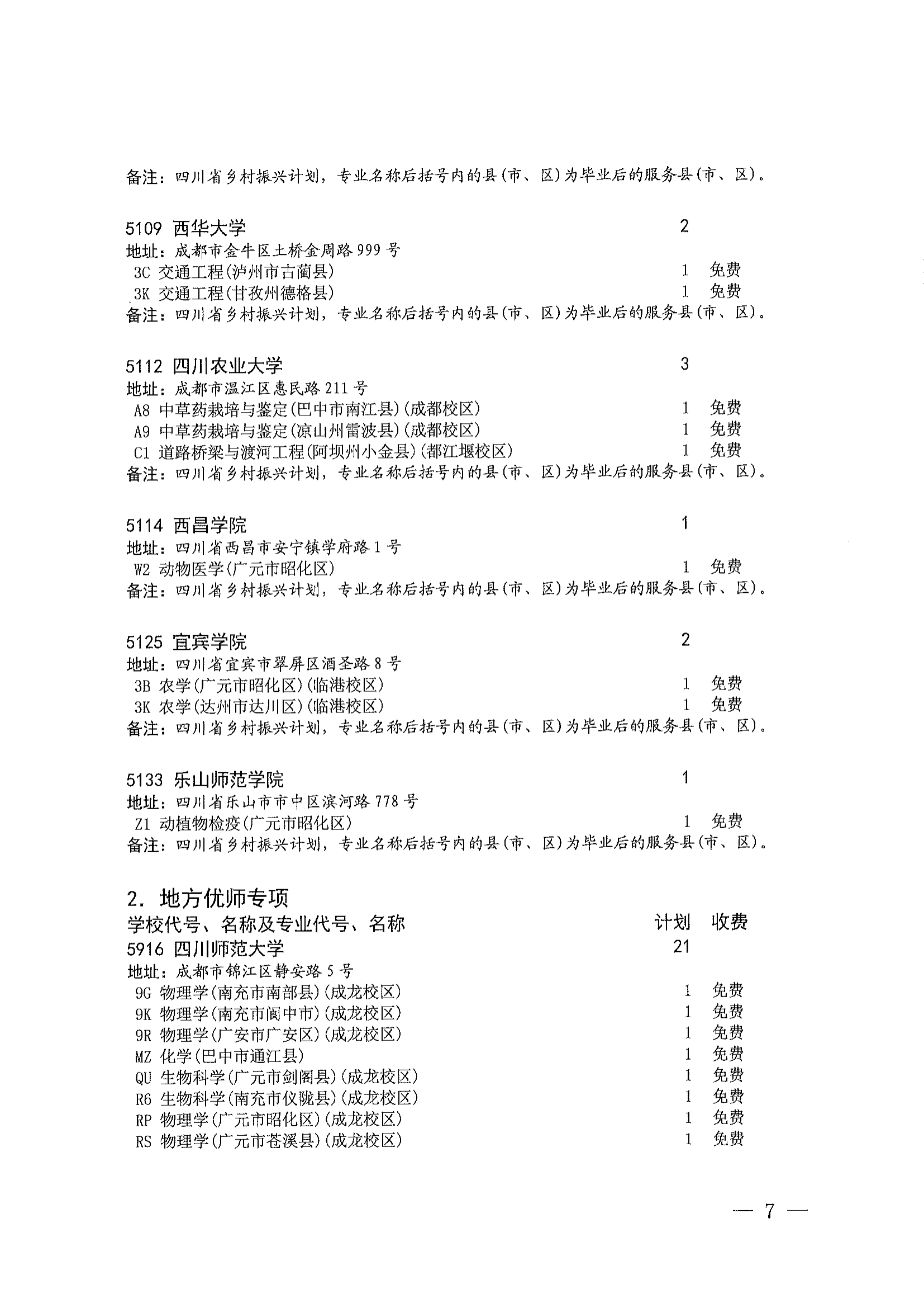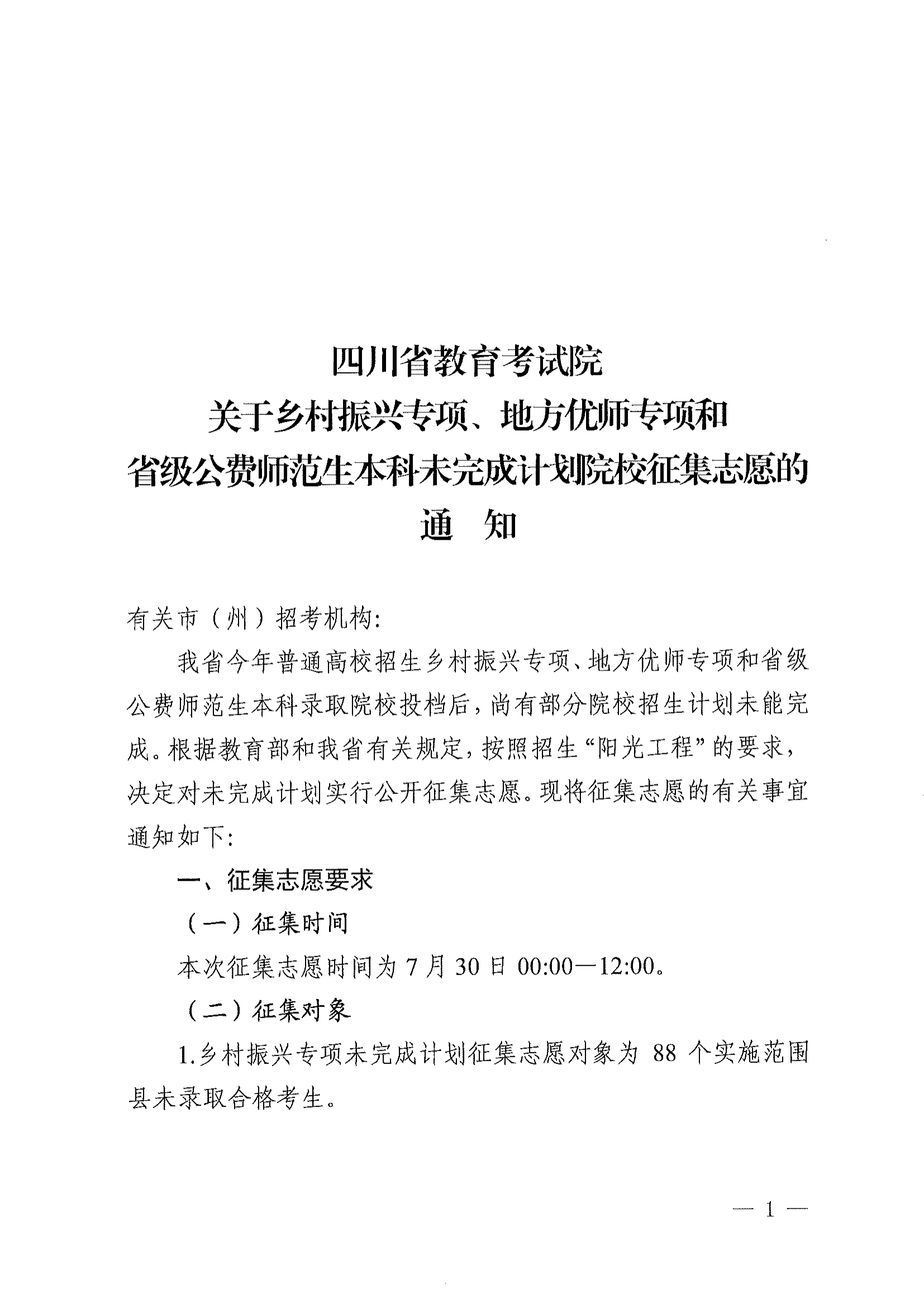 关于乡村振兴专项、地方优师专项和省级公费师范生本科未完成计划院校征集志愿的通知