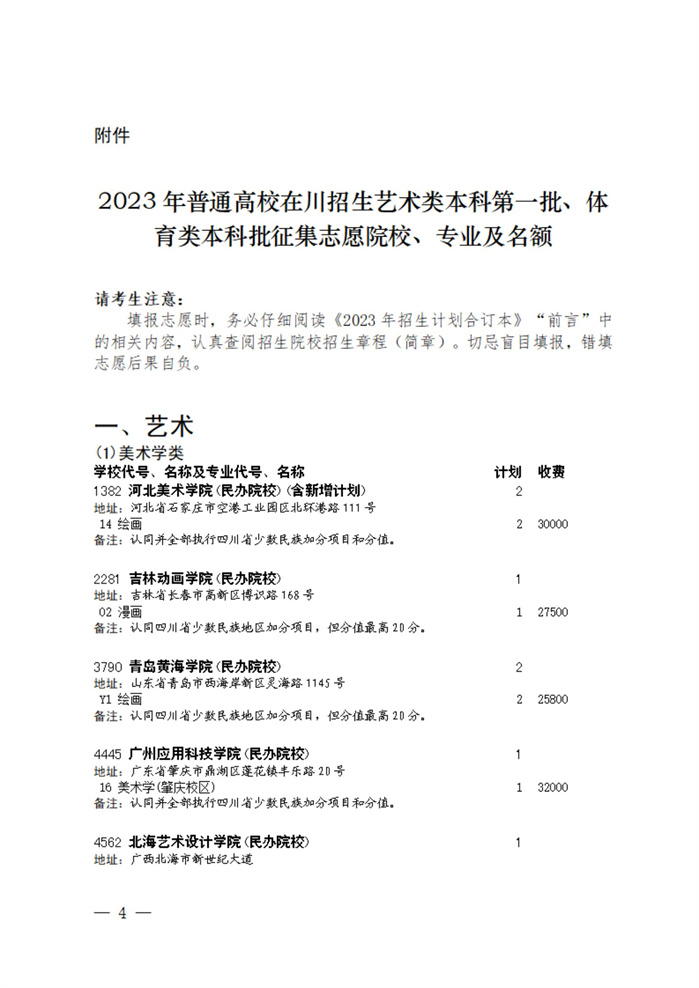 关于四川省2023年普通高校招生艺术类本科第一批、体育类本科批征集志愿的通知