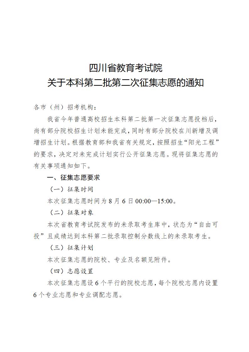关于本科第二批第二次征集志愿的通知