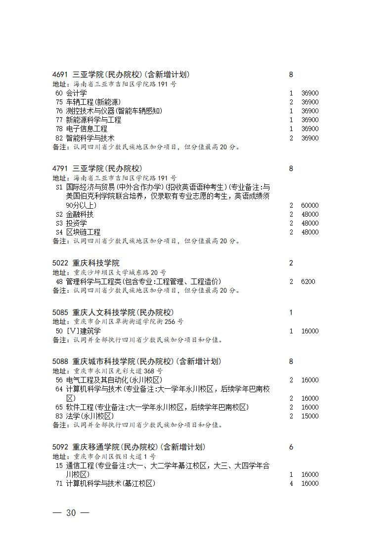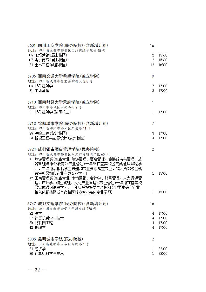四川省2025年普通高校专升本招生专业及计划