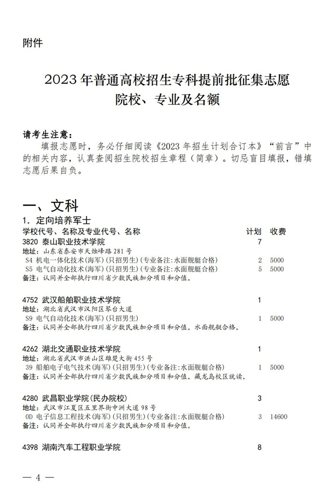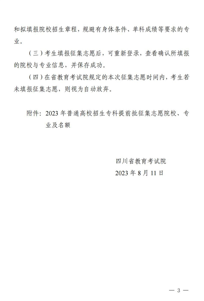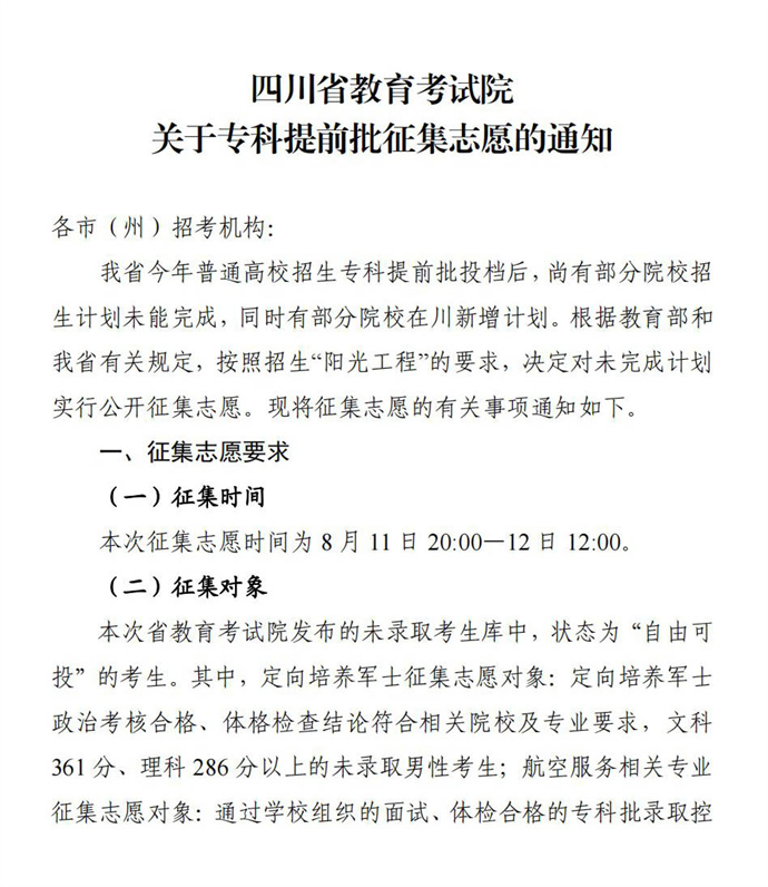 关于专科提前批征集志愿的通知