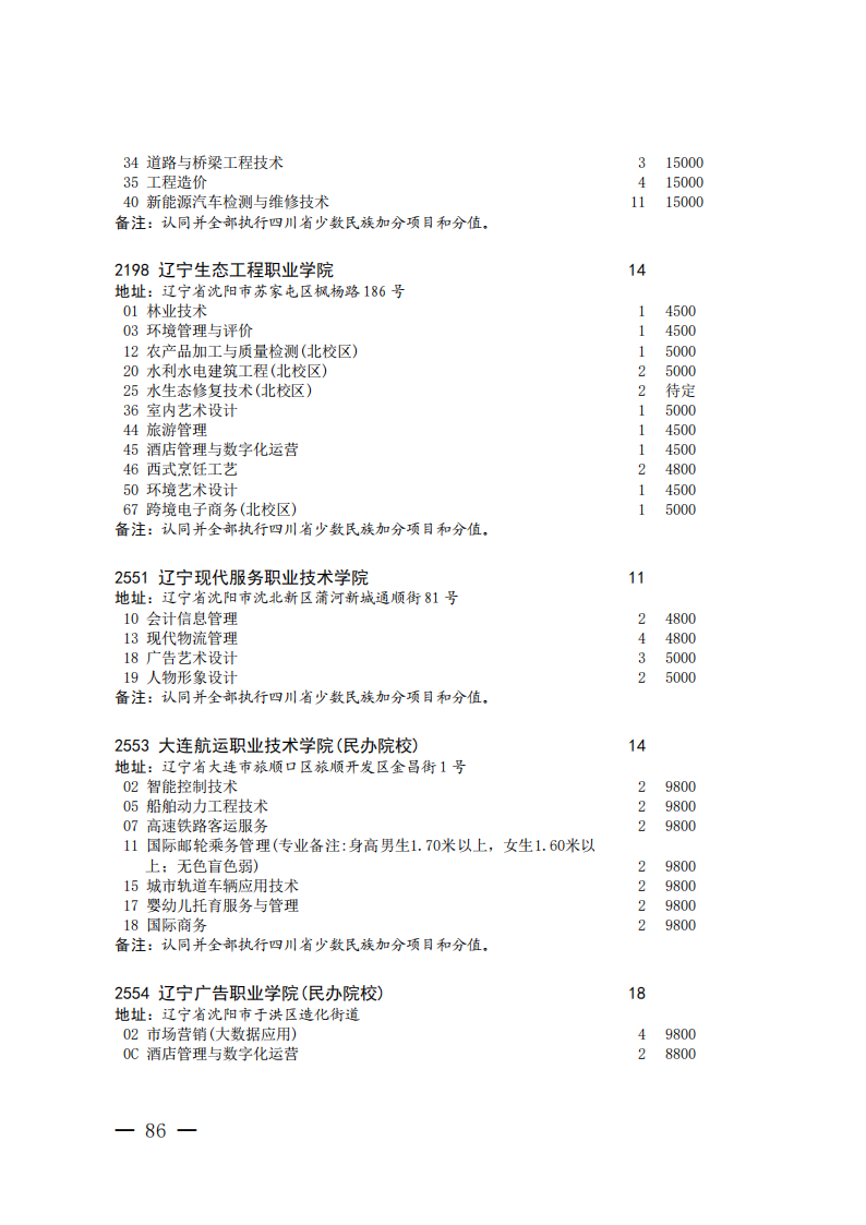 四川省2025年普通高校专升本招生专业及计划