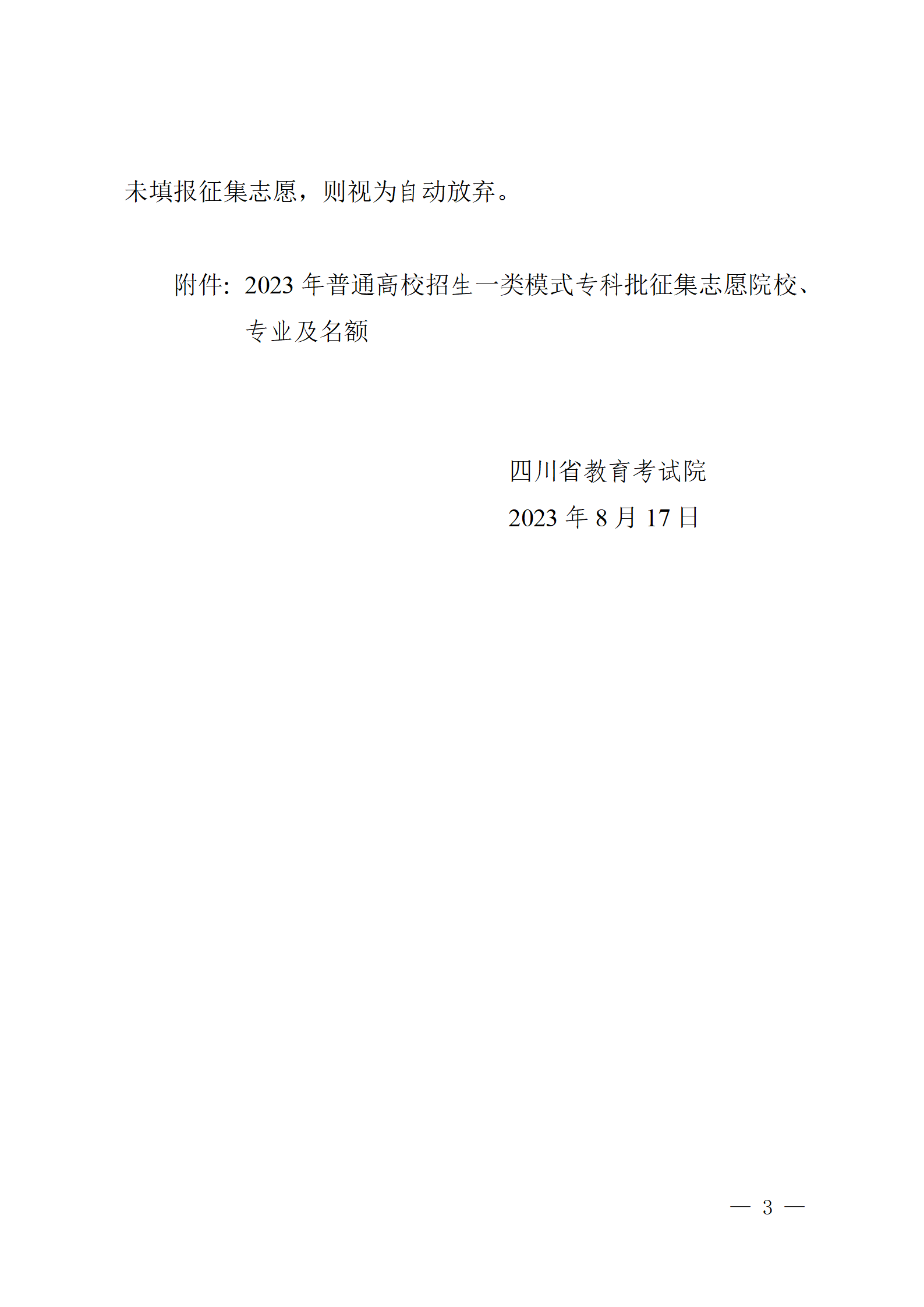 关于普通高校一类模式专科批未完成计划院校征集志愿的通知