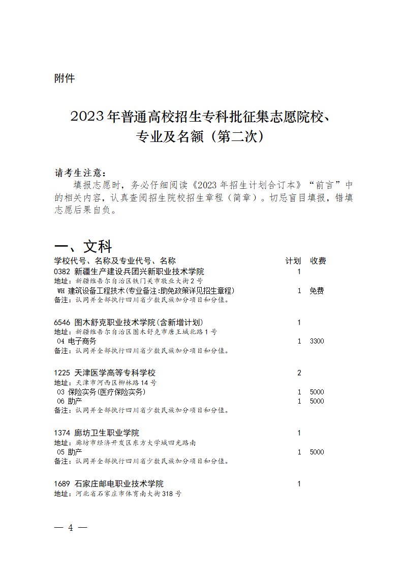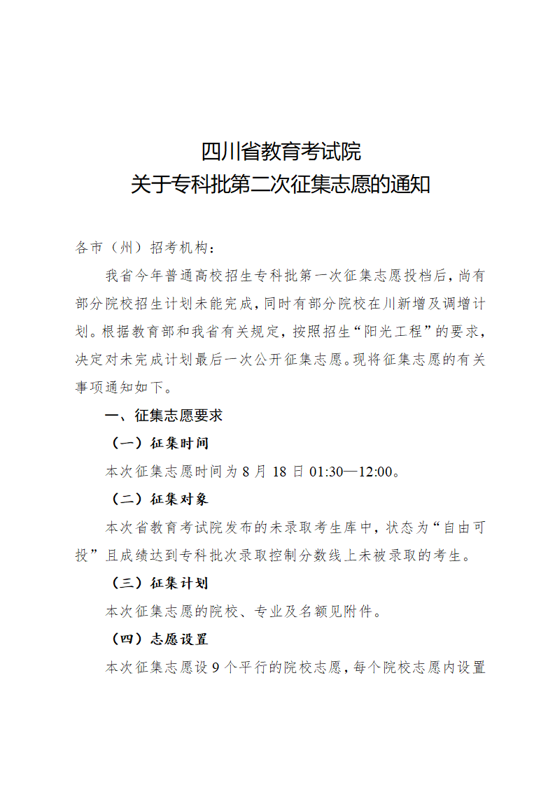关于专科批第二次征集志愿的通知(文科)