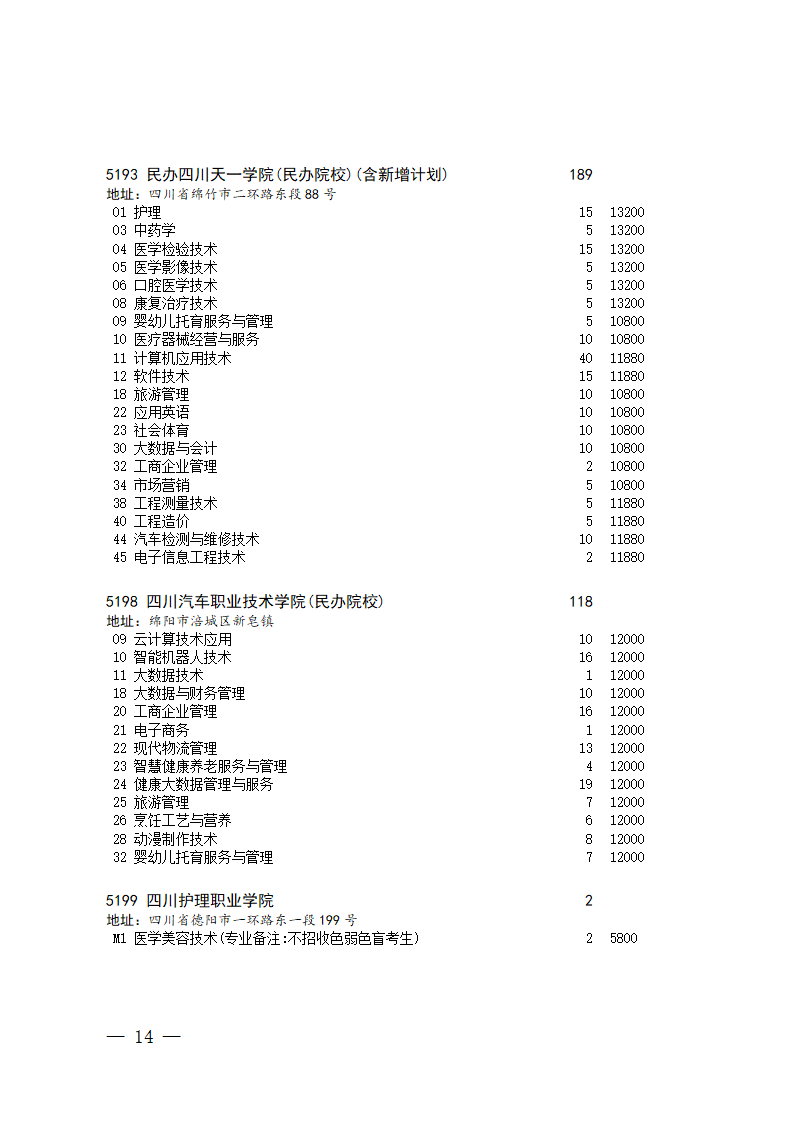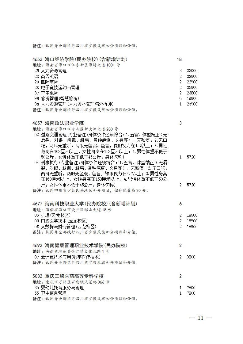 四川省2025年普通高校专升本招生专业及计划